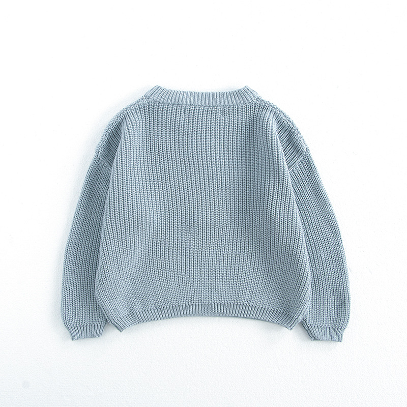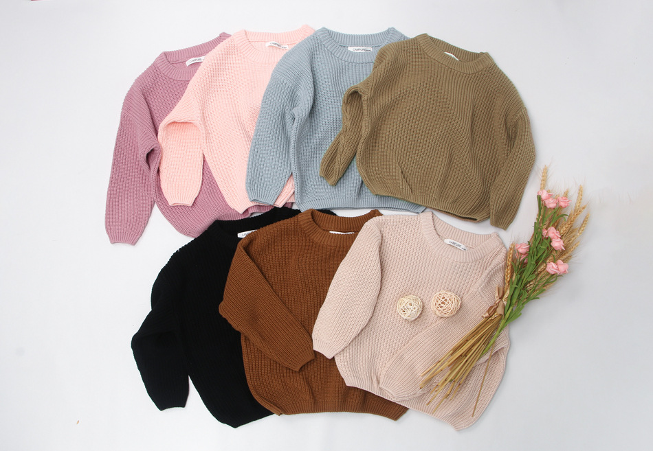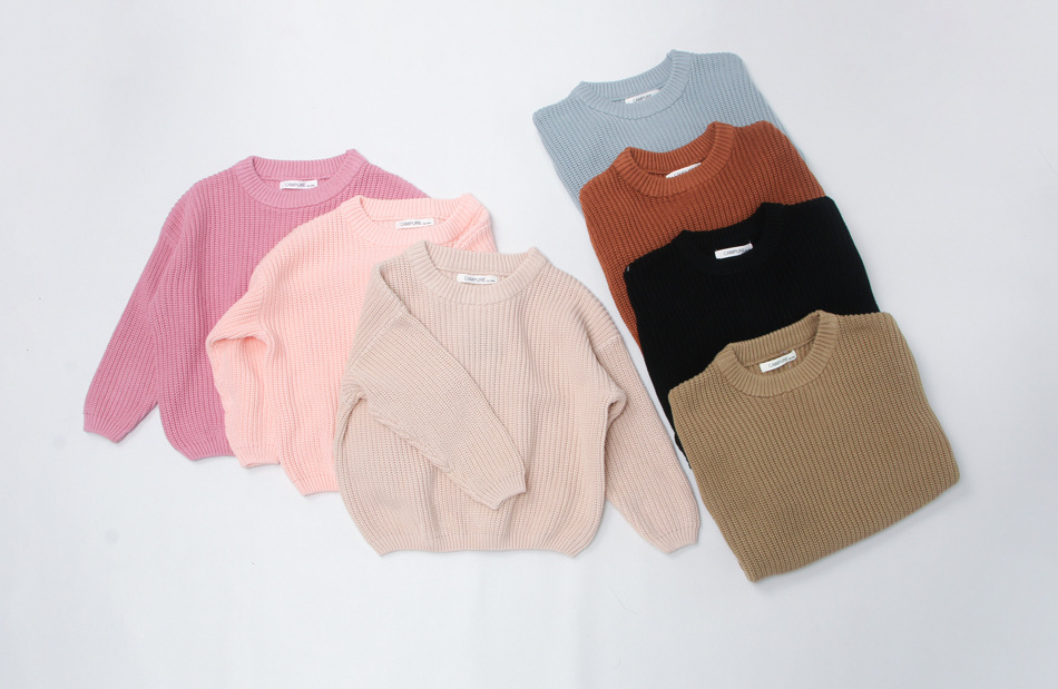 가을 2022 새로운 한국식 라운드 넥 솔리드 컬러 느슨한 어린이를위한 모든 매치 스웨터 게으른 스타일 긴팔 풀오버
