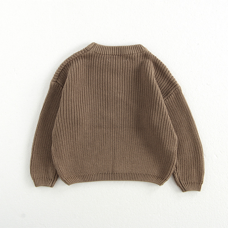 가을 2022 새로운 한국식 라운드 넥 솔리드 컬러 느슨한 어린이를위한 모든 매치 스웨터 게으른 스타일 긴팔 풀오버스토어 가기