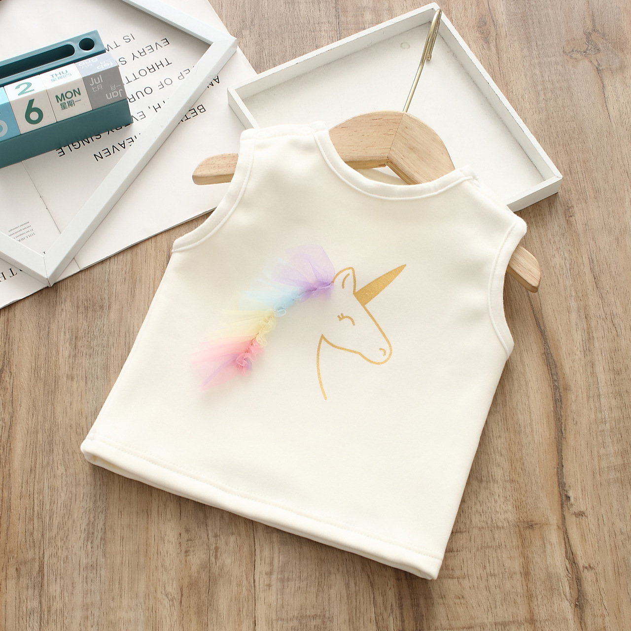 봄 새로운 어린이 기모 두꺼운 아기 조끼 플러시 풀오버 따뜻한 만화 메쉬 조끼 여성 의류