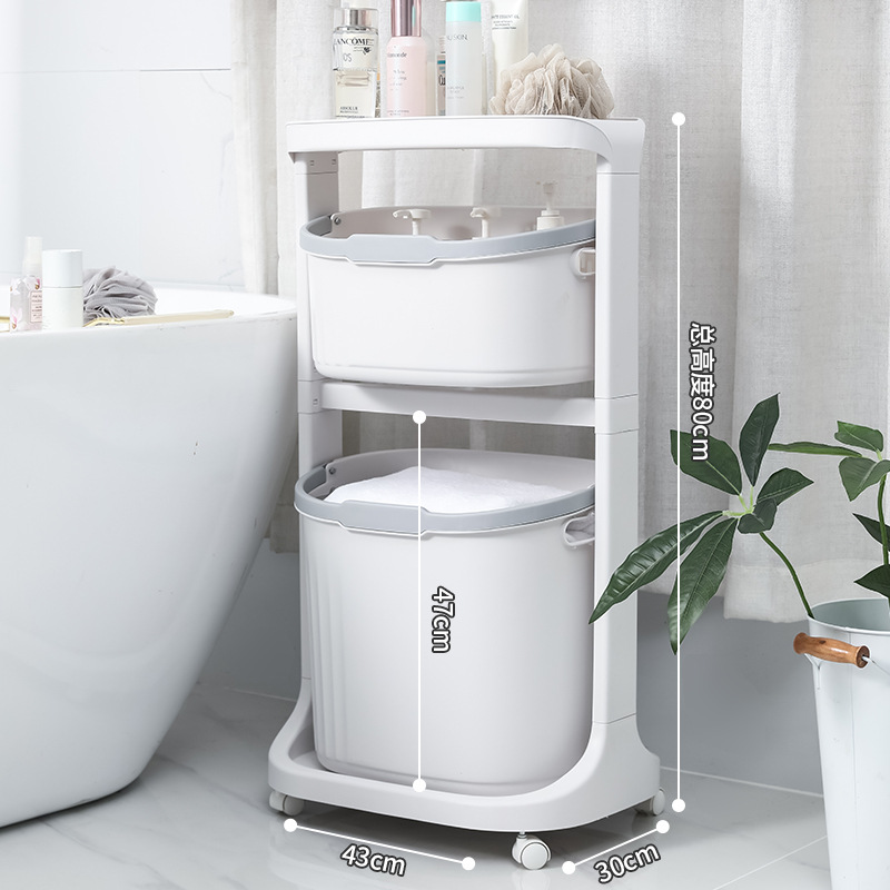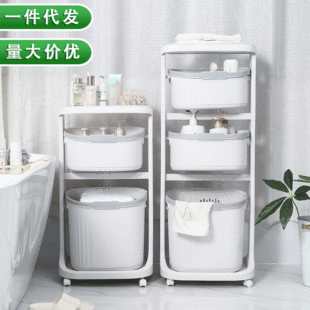 家用多层整理浴室置物架带滑轮旋转浴室落地式收纳筐多功能洗衣篮