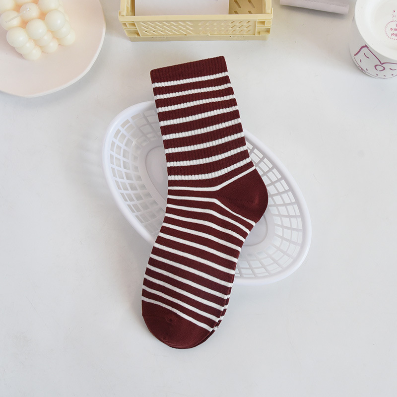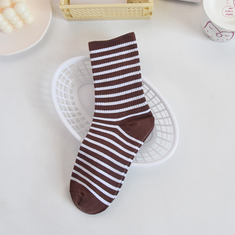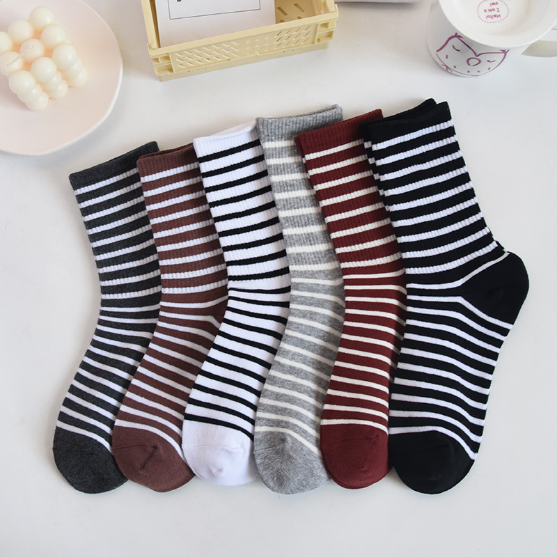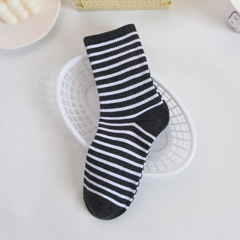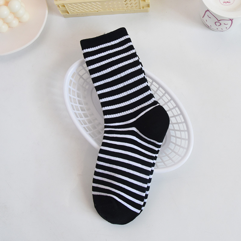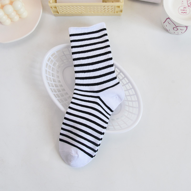 트렌디한 한국식 대학식 중간 길이 양말 가을 겨울 다용도 겉옷 면 양말 하이 웨이스트 흑백 아동용 롱 스트라이프 양말스토어 가기