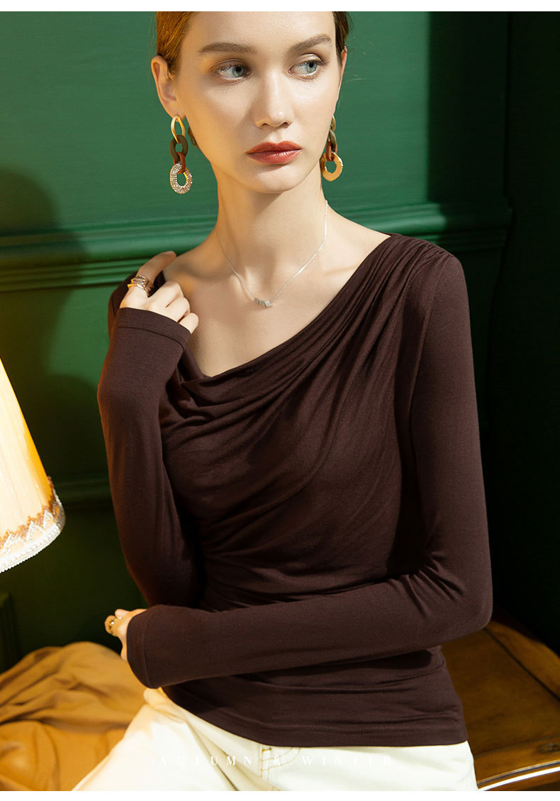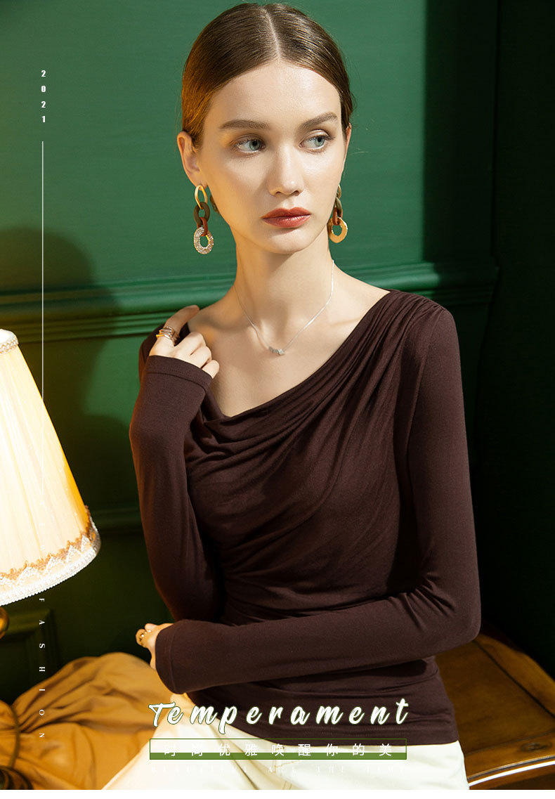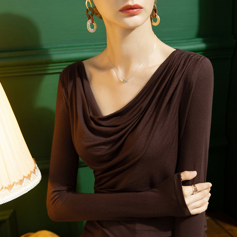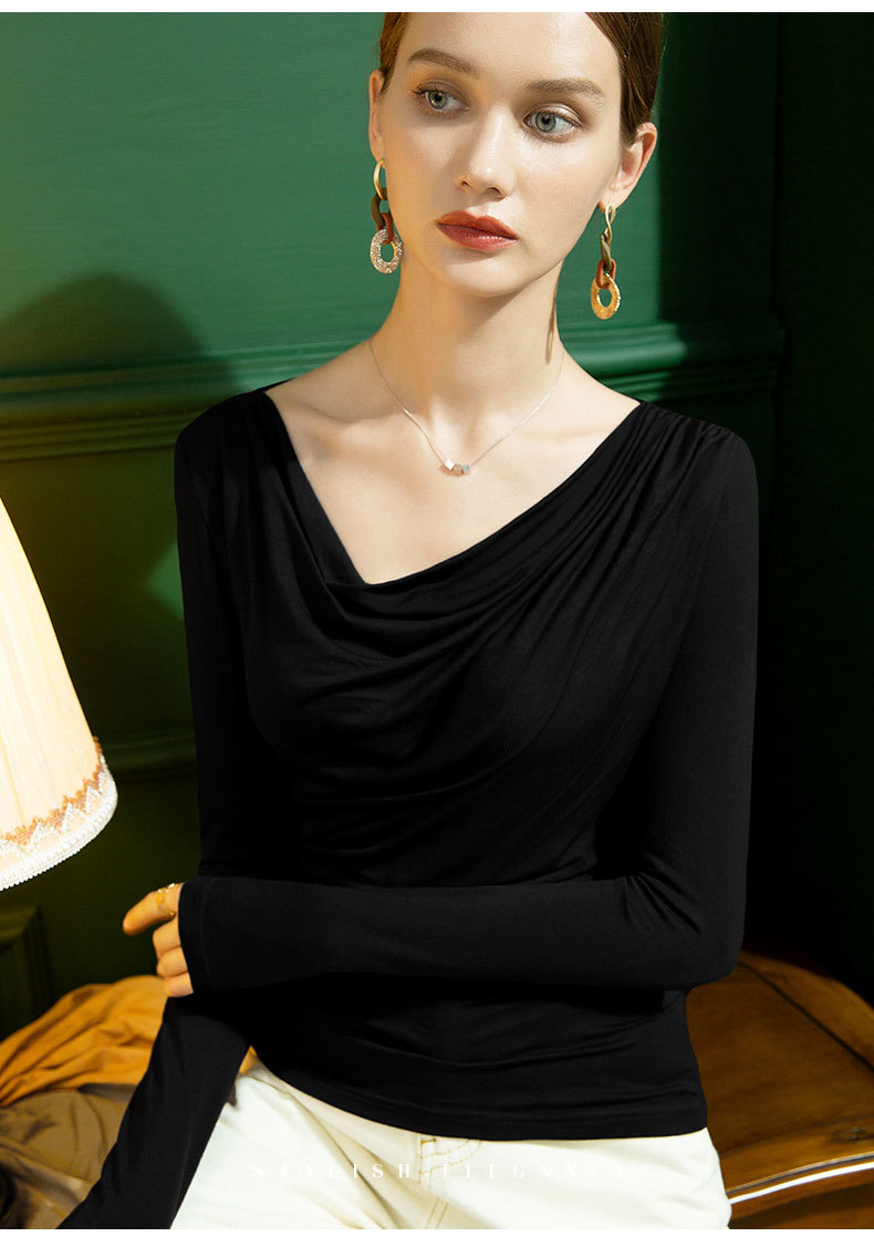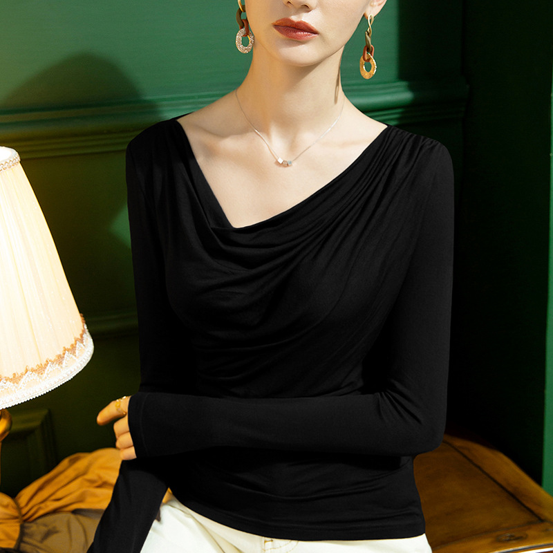 가을 새로운 모달 스윙 칼라 긴팔 티셔츠 여성용 슬림핏 슬리밍 단색 세련된 셔츠 베이스 셔츠
