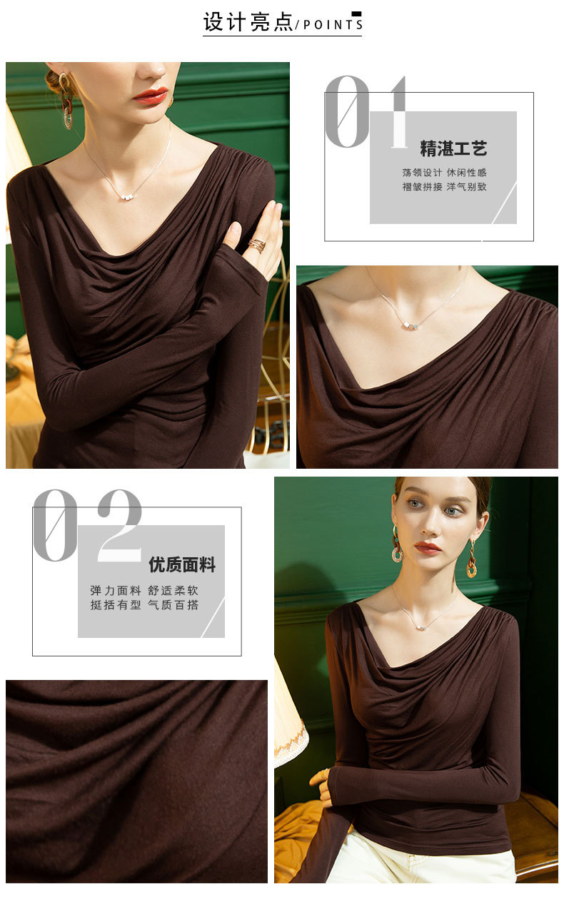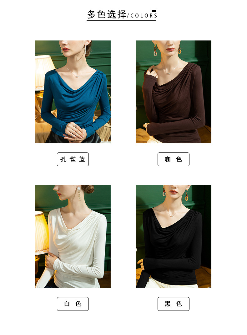 가을 새로운 모달 스윙 칼라 긴팔 티셔츠 여성용 슬림핏 슬리밍 단색 세련된 셔츠 베이스 셔츠스토어 가기