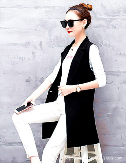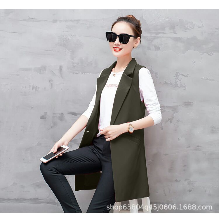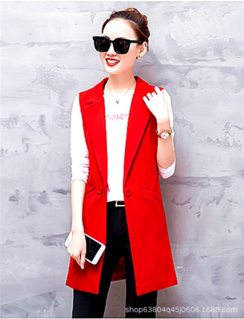 세트 조끼 여성의 중간 길이 봄과 가을 얇은 슬림 핏 새로운 한국 스타일 민소매 조끼 레드 블랙 더블 버클 조끼스토어 가기