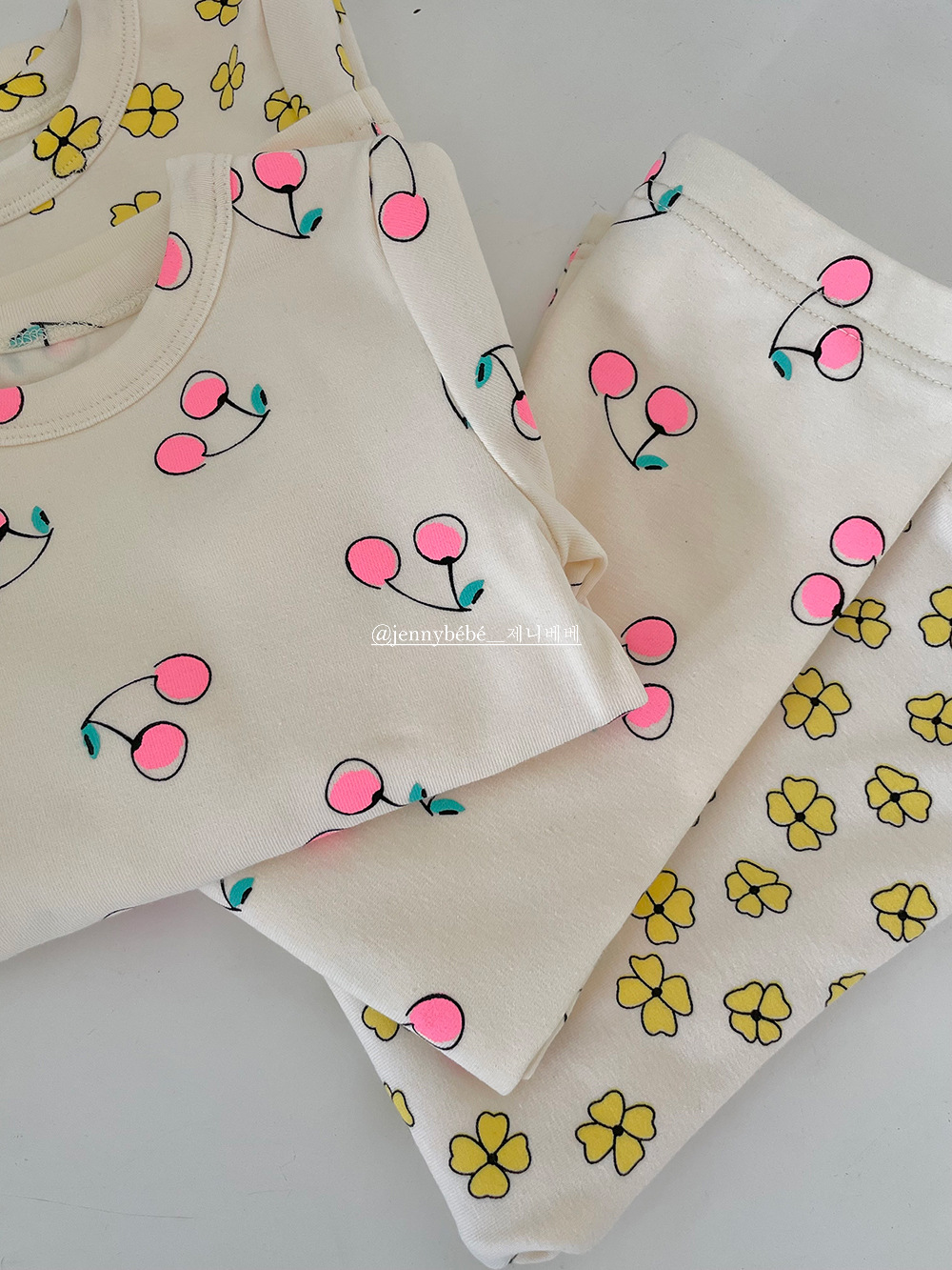 [Jennybebe] 여자 체리 가정복 세트 아기 스트레치 가을 옷 긴 바지 투피스 어린이 잠옷