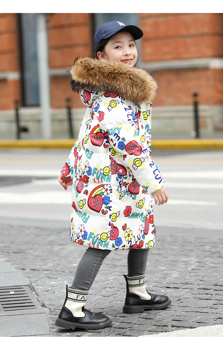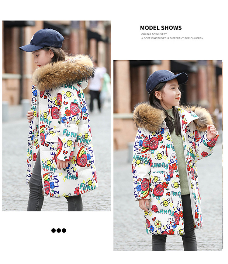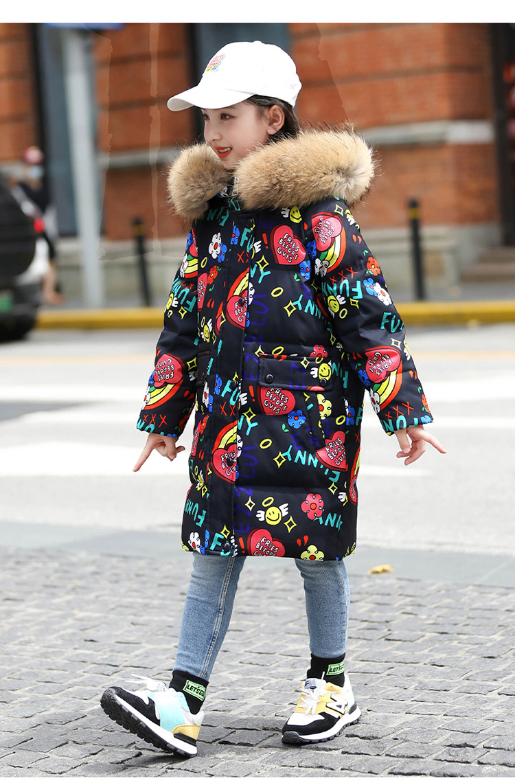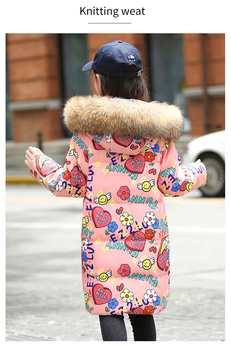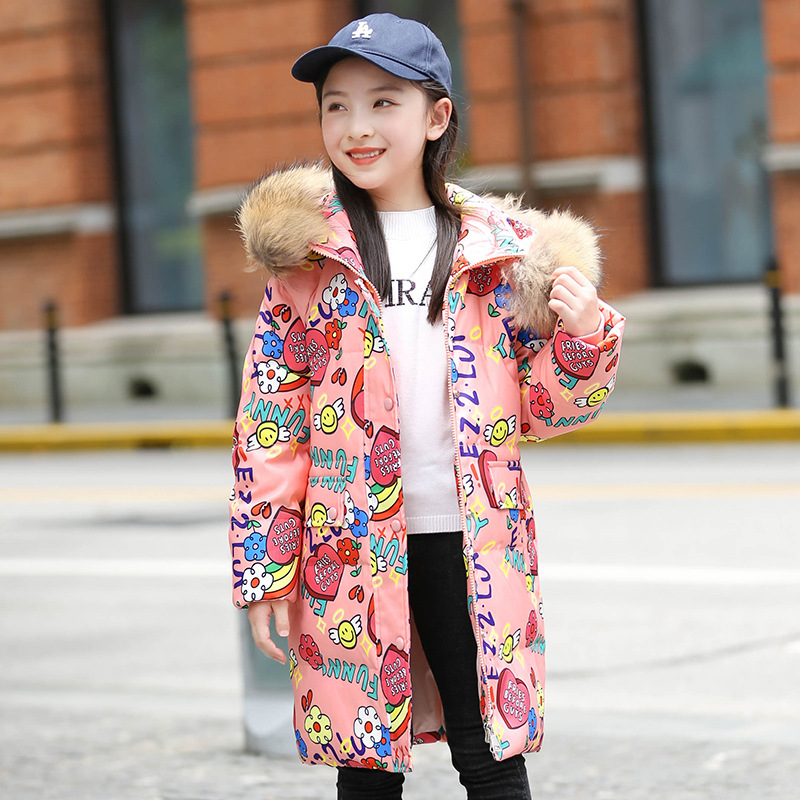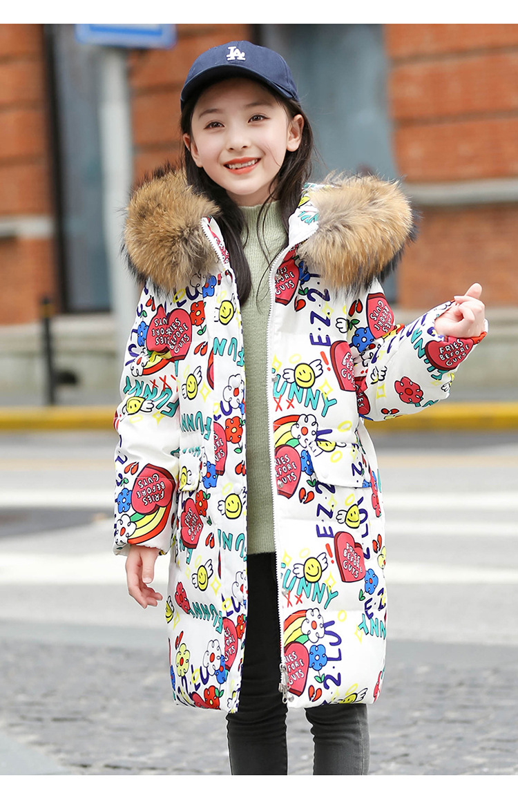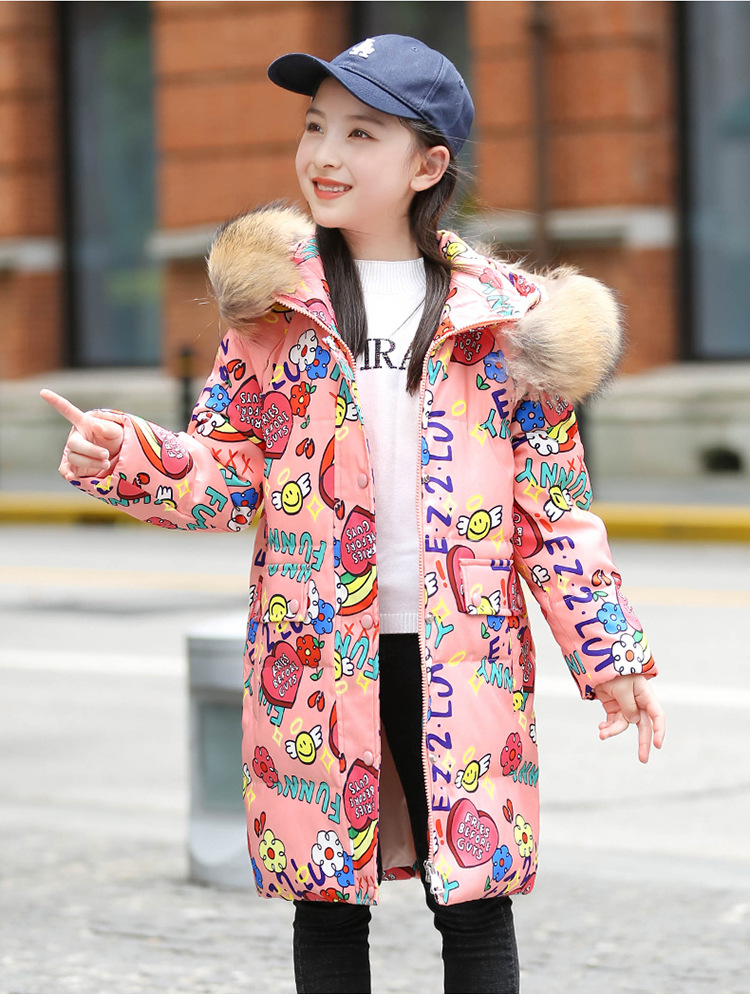 2021 새로운 소녀 다운 재킷 긴 만화 인쇄 두꺼운 어린이 소녀 낙서 다운 재킷 도매스토어 가기