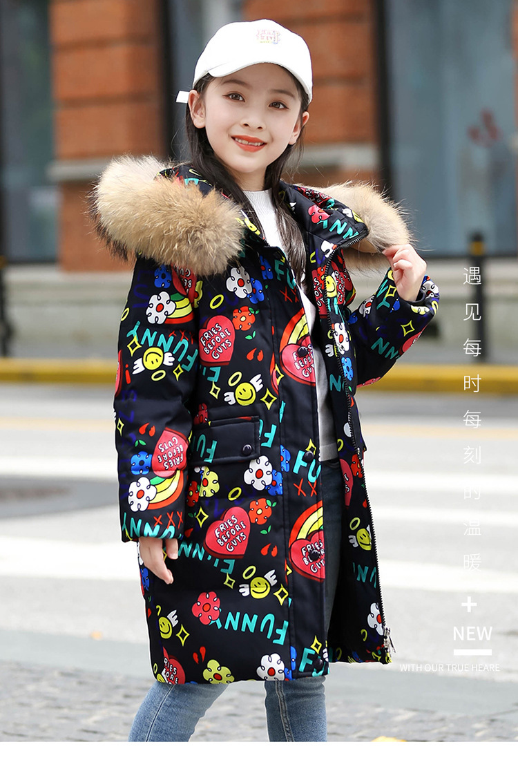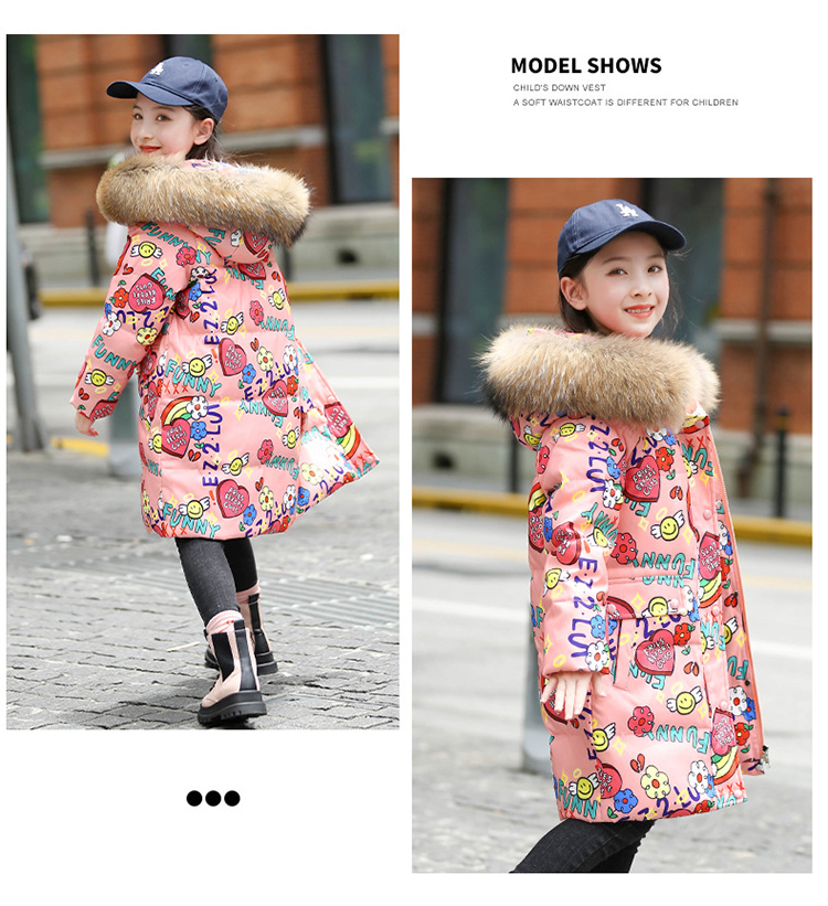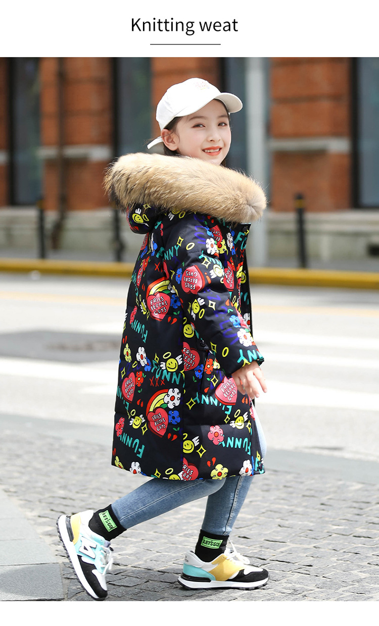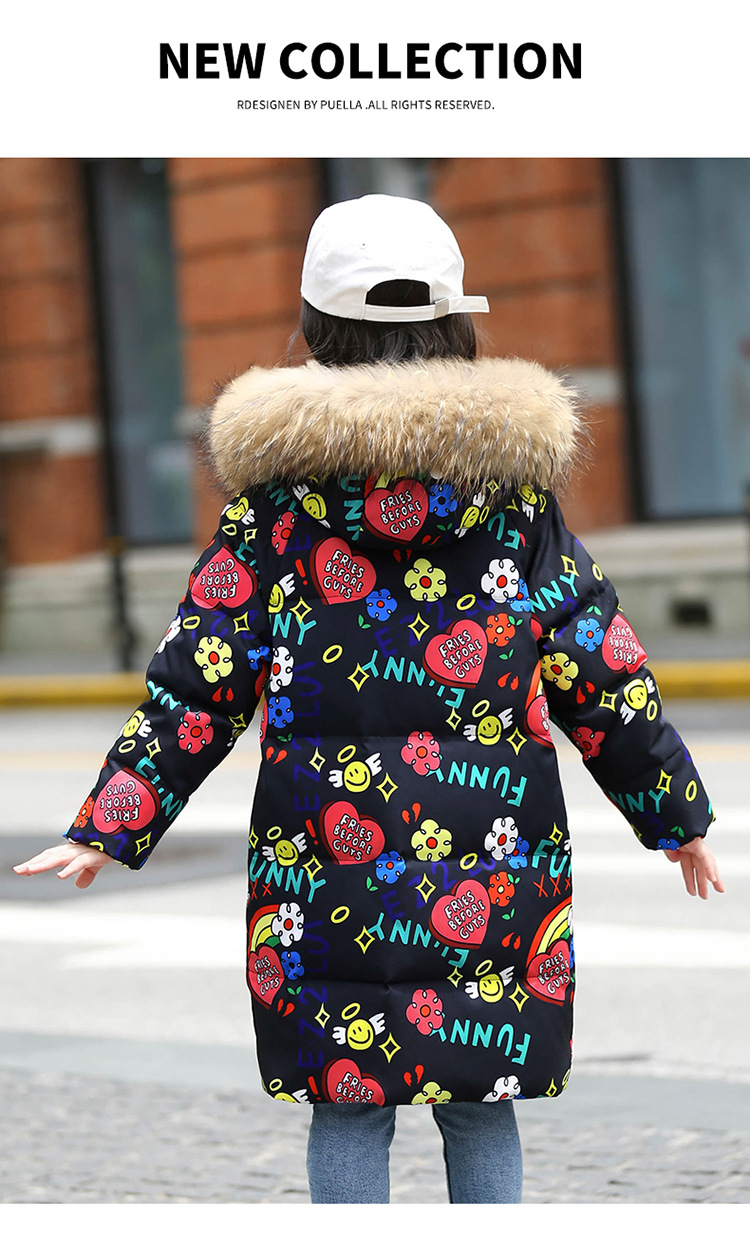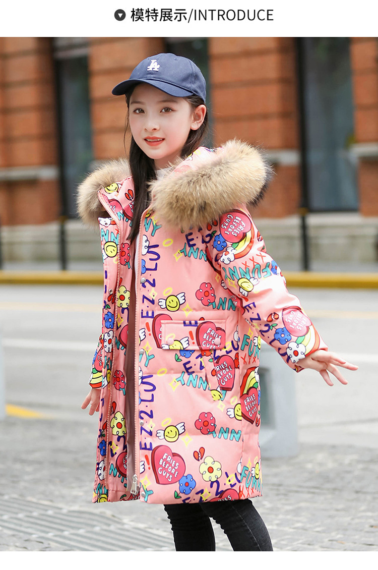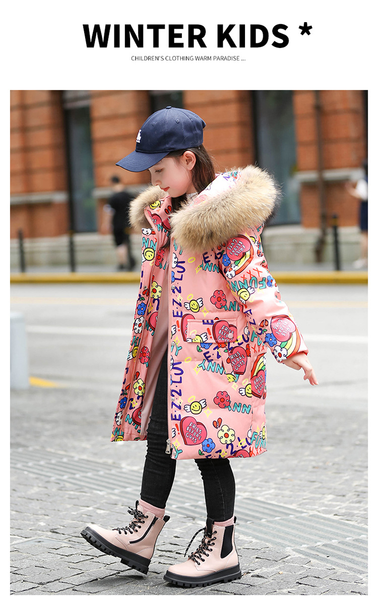 2021 새로운 소녀 다운 재킷 긴 만화 인쇄 두꺼운 어린이 소녀 낙서 다운 재킷 도매스토어 가기