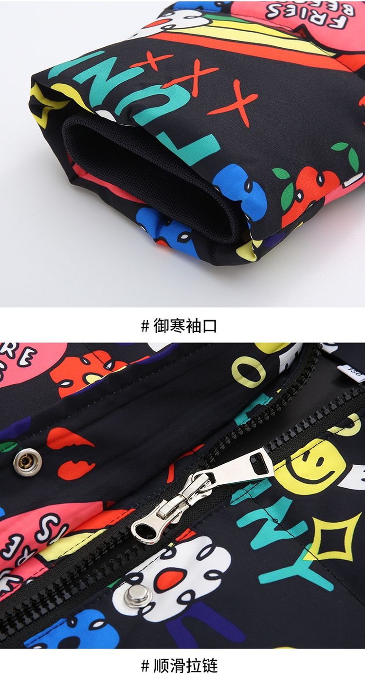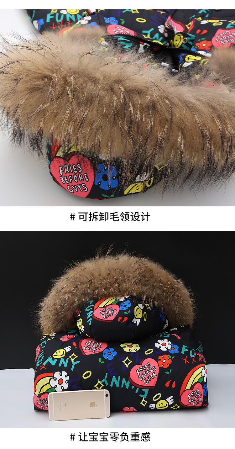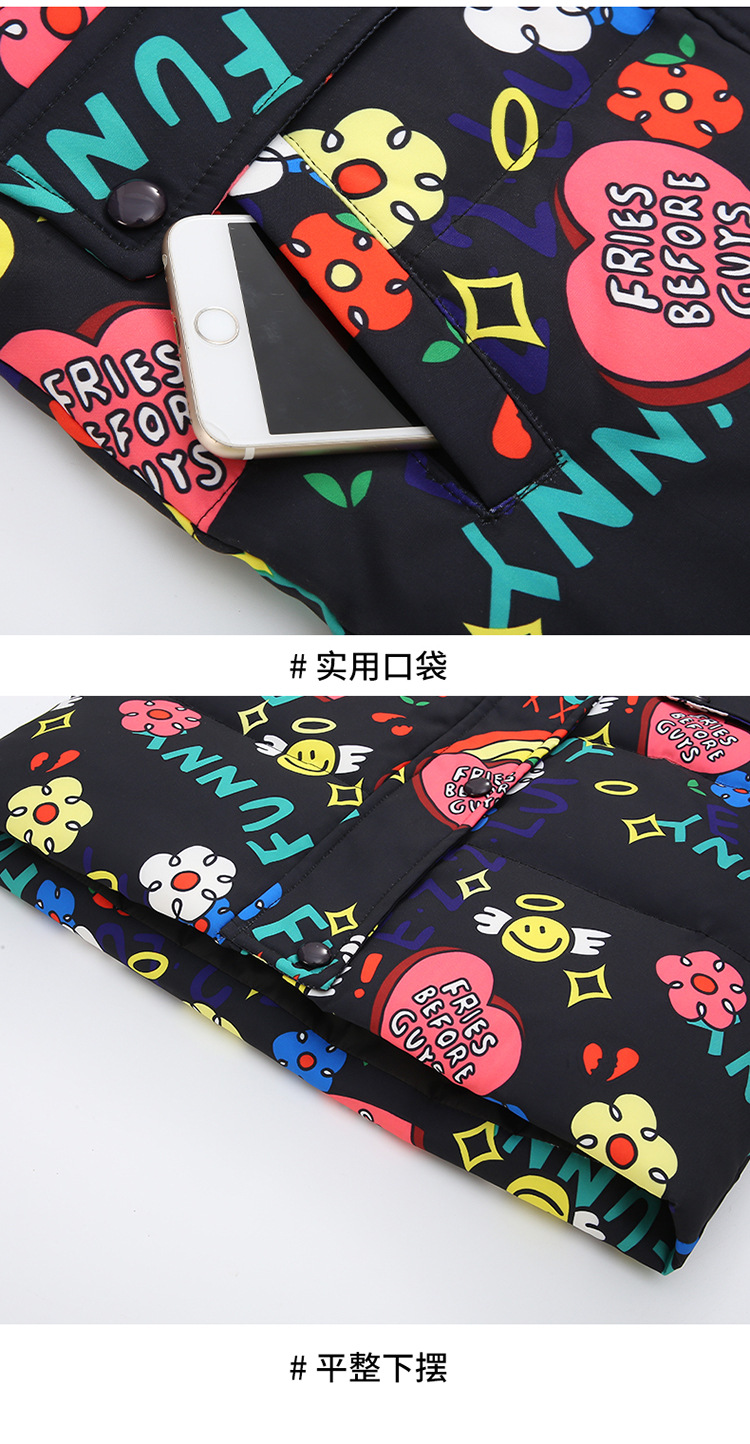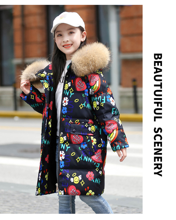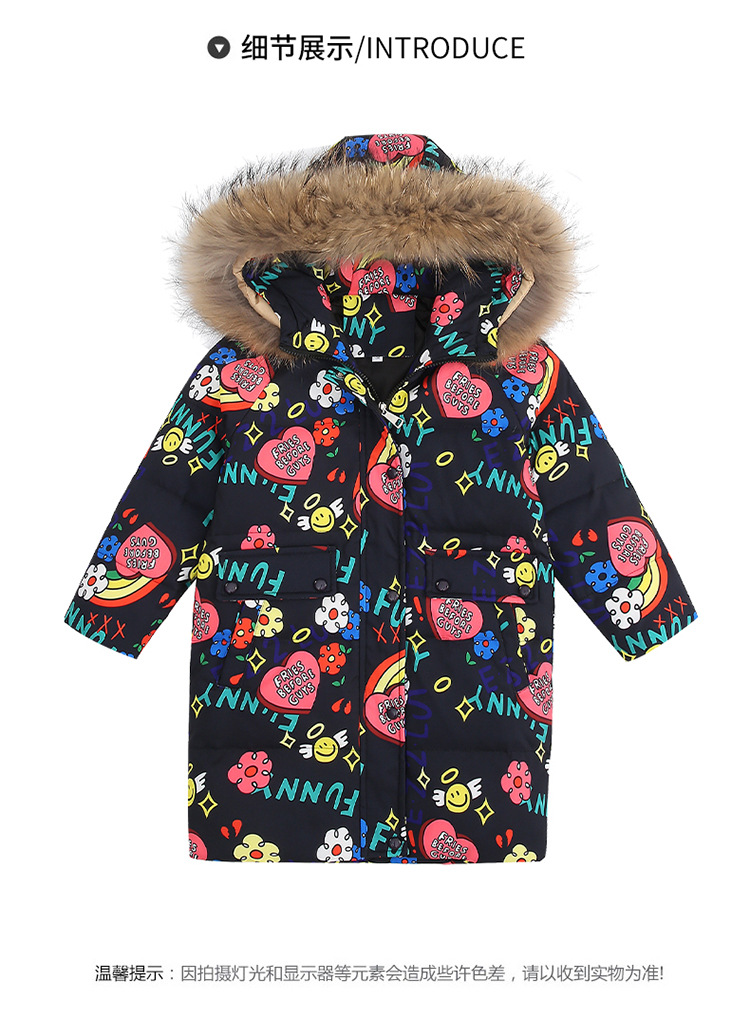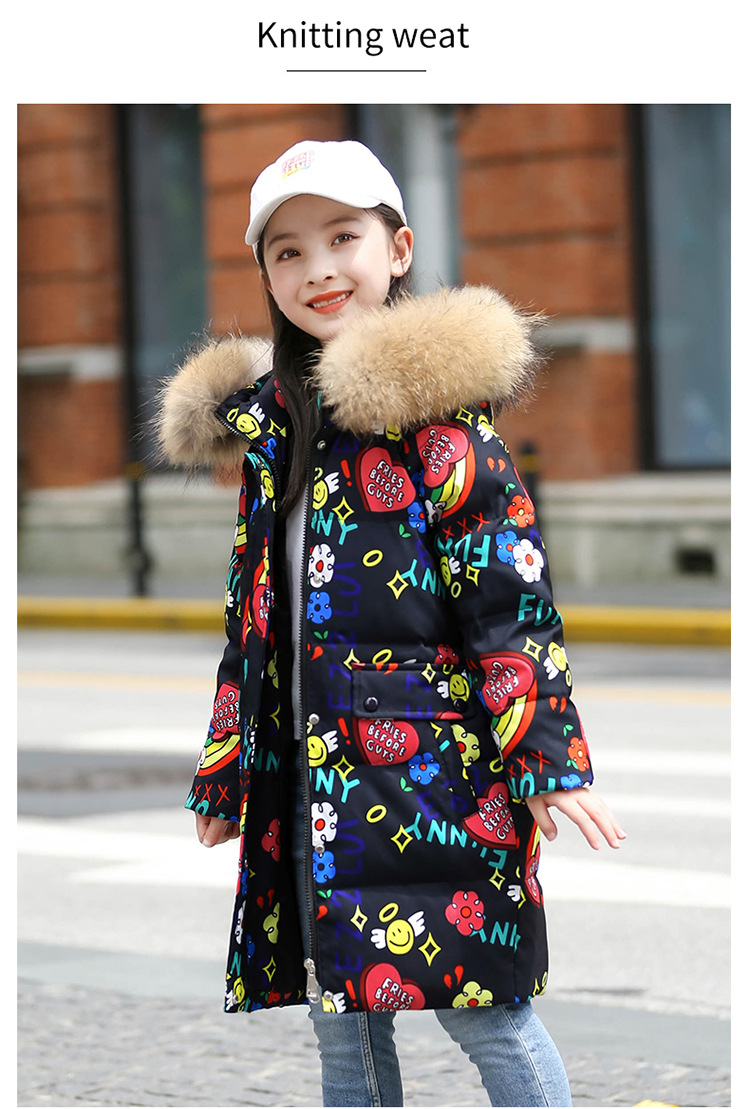 2021 새로운 소녀 다운 재킷 긴 만화 인쇄 두꺼운 어린이 소녀 낙서 다운 재킷 도매스토어 가기