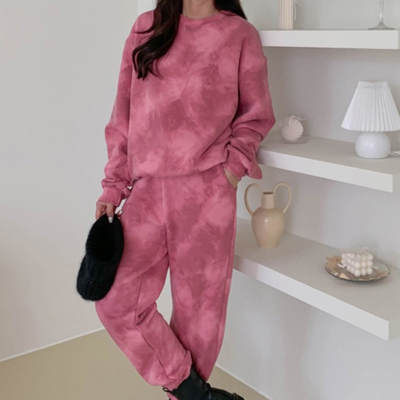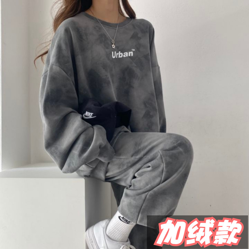 세트 여성용 면 긴팔 바지 여성용 투피스 세트 2023 새로운 봄 가을 겨울 플러스 사이즈 캐주얼 스포츠웨어 기모스토어 가기