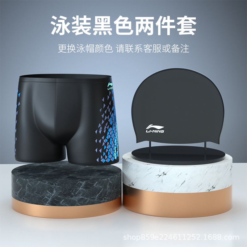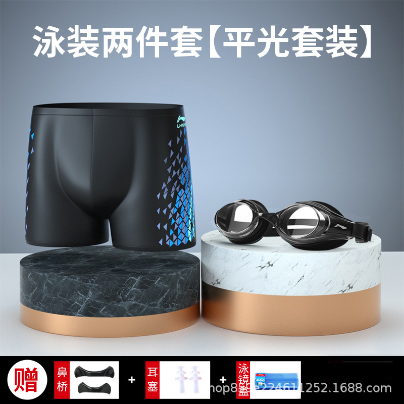 리 닝 수영 트렁크 남자의 여름 당황 방지 복서 수영 트렁크 장비 남자의 수영복 수영 고글 세트 플러스 사이즈 수영복스토어 가기