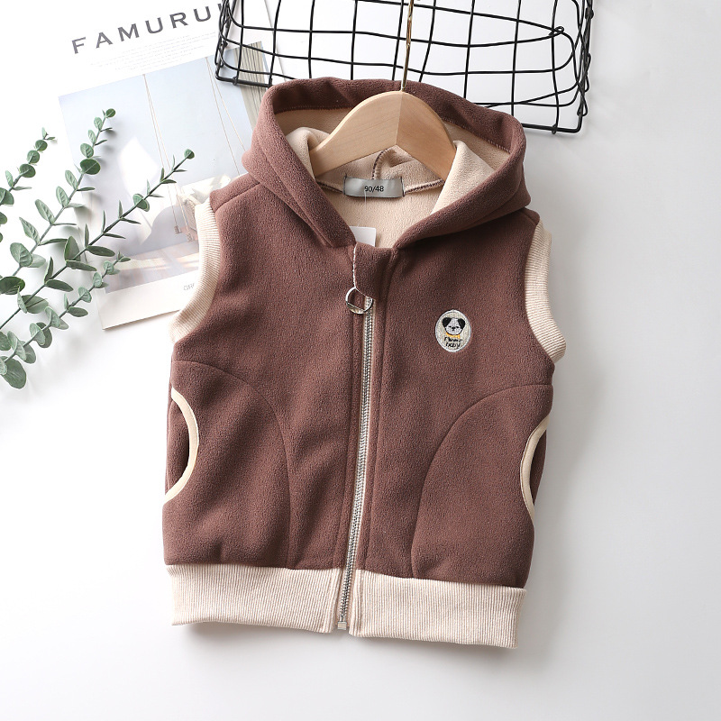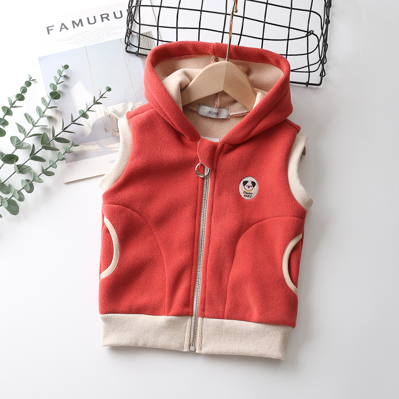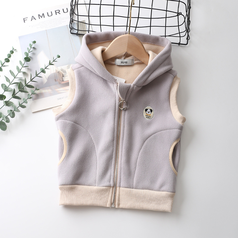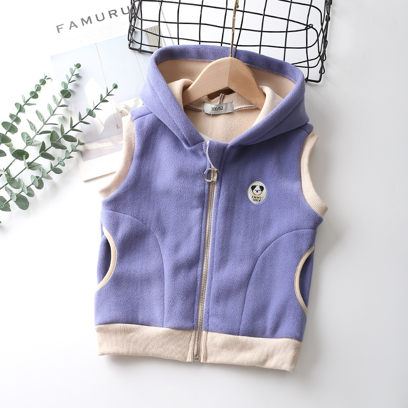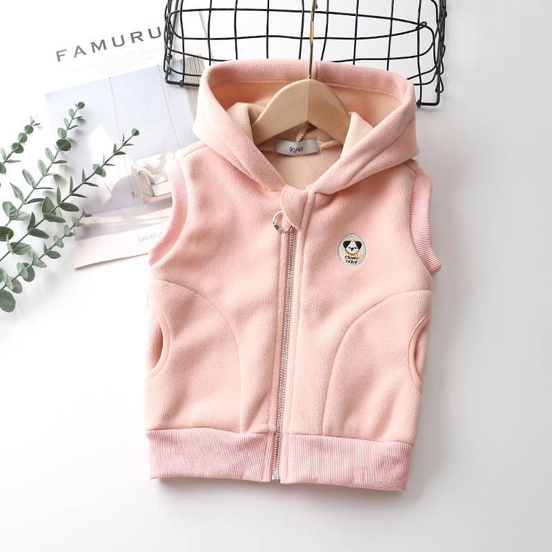 겨울 새로운 후드 조끼 코트 중소 아동복 올리 벨벳 어린이 조끼 따뜻한 아동복 탑 지퍼 샤니