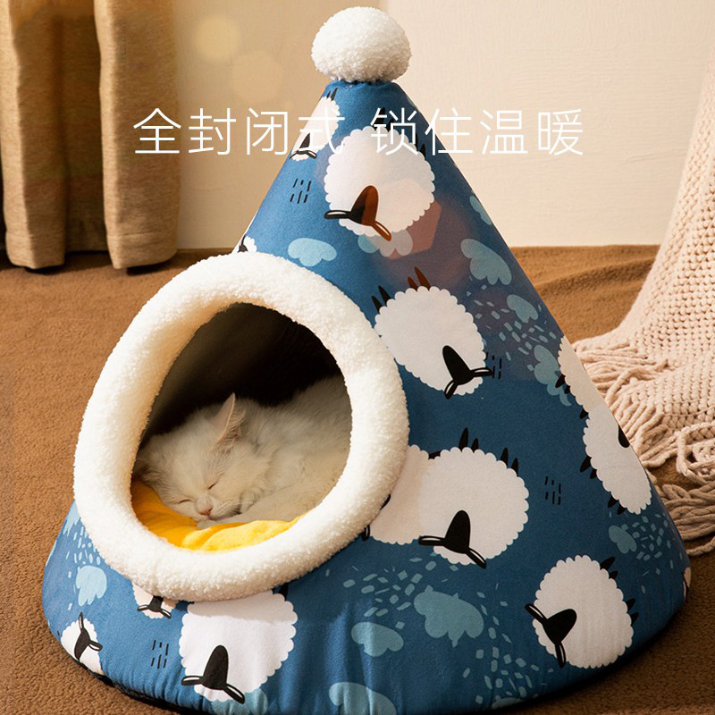 고양이 집 밀폐형 텐트 삼각형 몽골 텐트 가을 겨울 따뜻한 수면 고양이 침대 강아지 집 애완동물 집