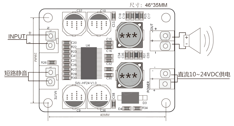 功放功率:1*60W(一个声道,要求立体声要两个)