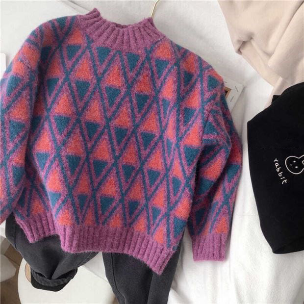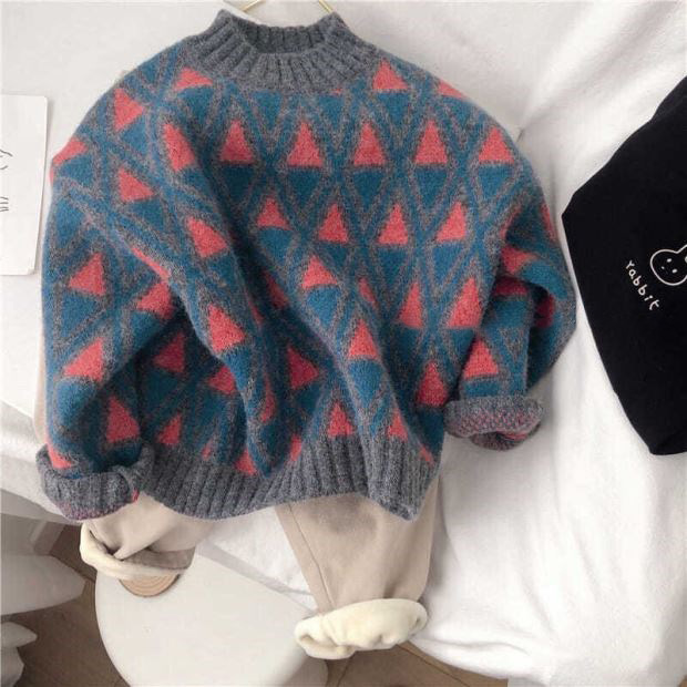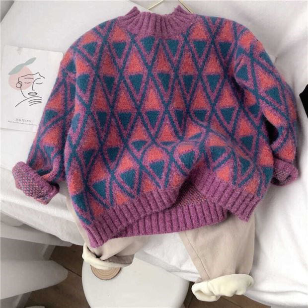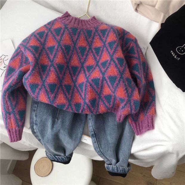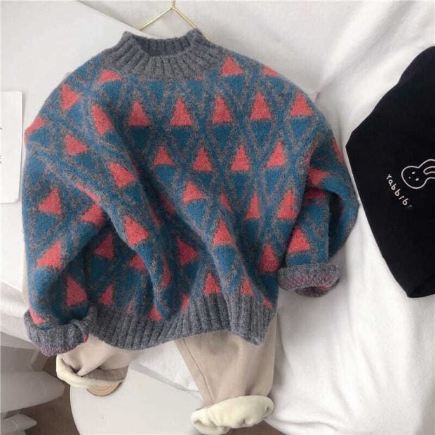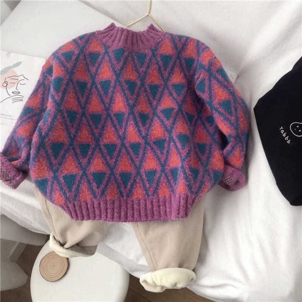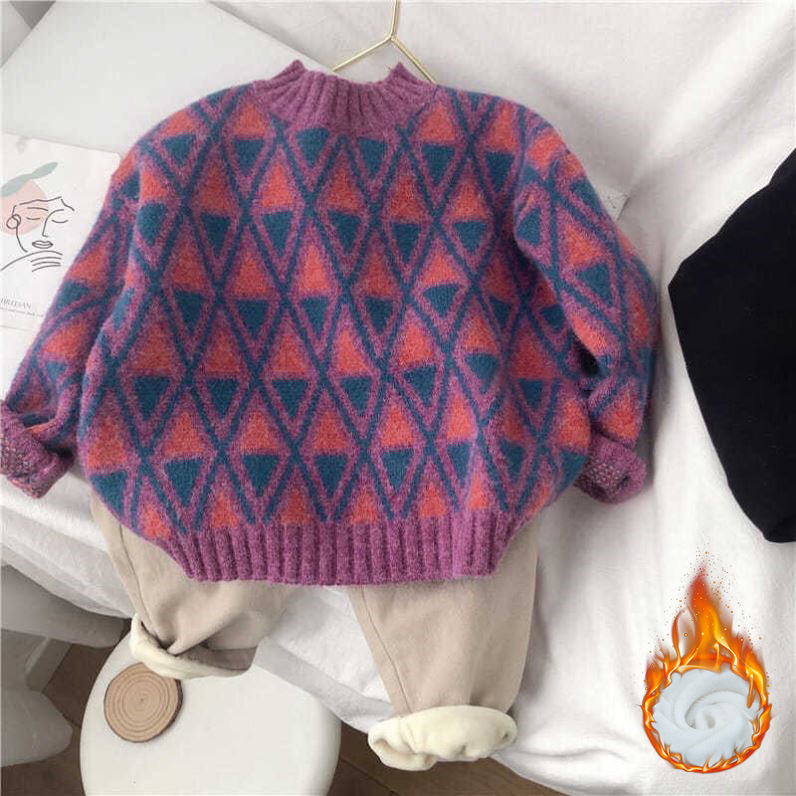 한국 스타일 신상 스웨터 가을 겨울 남녀 아동용 패셔너블한 베이비 풀오버 따뜻한 라운드넥 니트웨어 일체형 플리스스토어 가기