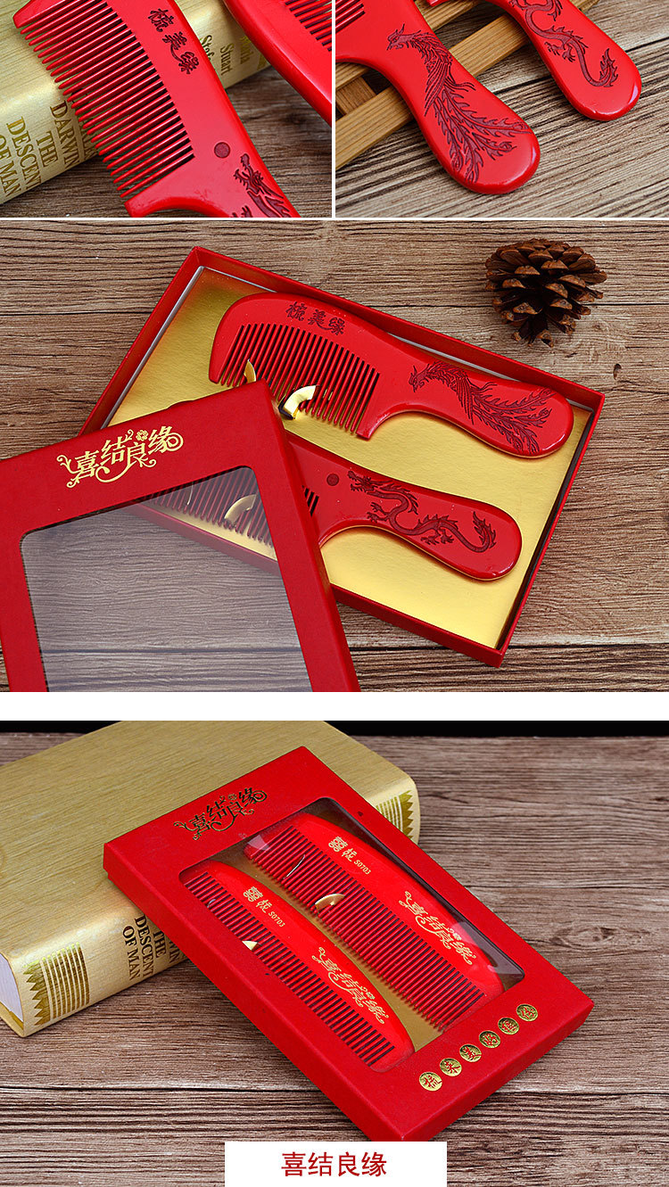 웨딩 나무 빗 용과 피닉스 쌍 빗 빨간 신부 나무 조각 처녀의 빨간 쌍 고급 웨딩 용품스토어 가기