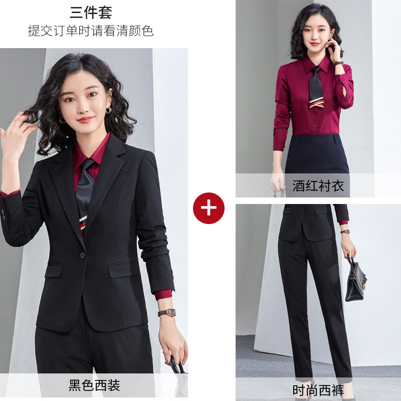 • 여성용 블랙 코트 + 바지 + 698 버건디 셔츠