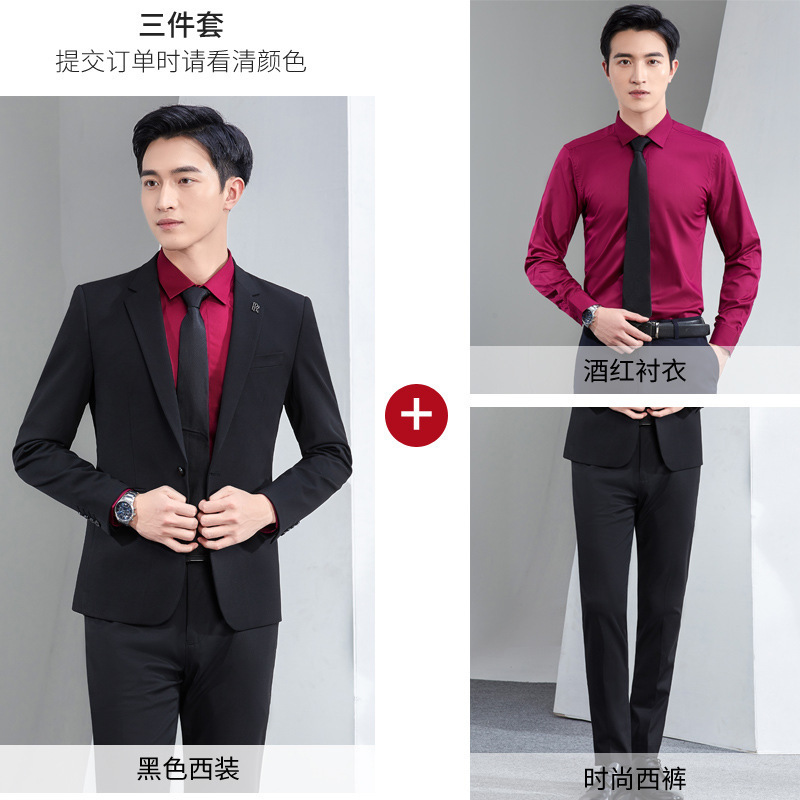 • 남성용 블랙 코트 + 바지 + 698 버건디 셔츠