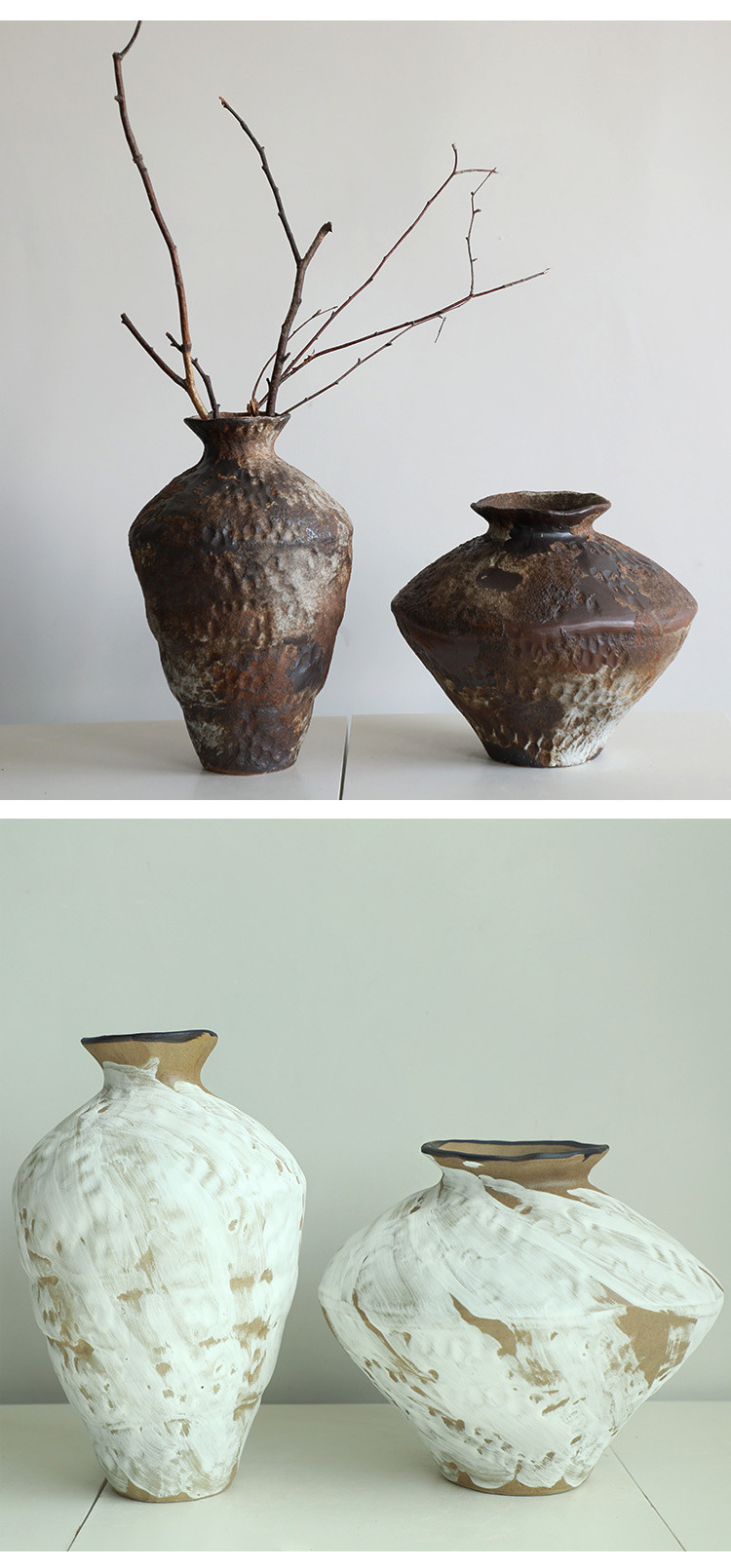 조용한 스타일 세라믹 꽃병 거친 도자기 꽃병 꽃 정리 레트로 향수 수제 홈스테이 호텔 선 장식스토어 가기