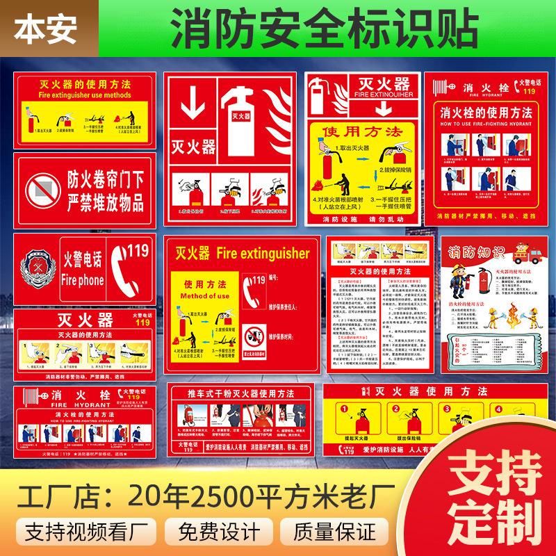 맞춤형 PVC 소화기 사용 방법 화재증 학교 호텔 소화기 사용 방법 식별 스티커스토어 가기