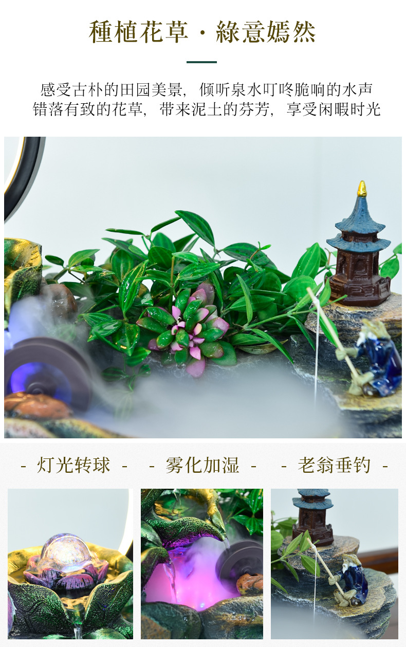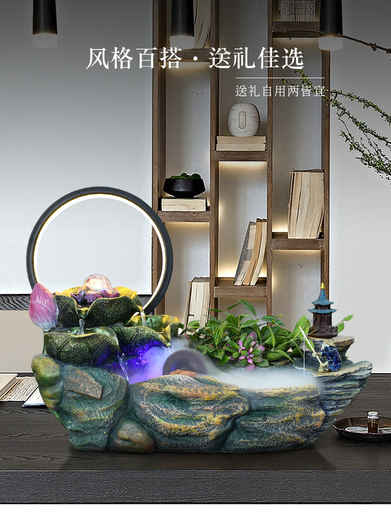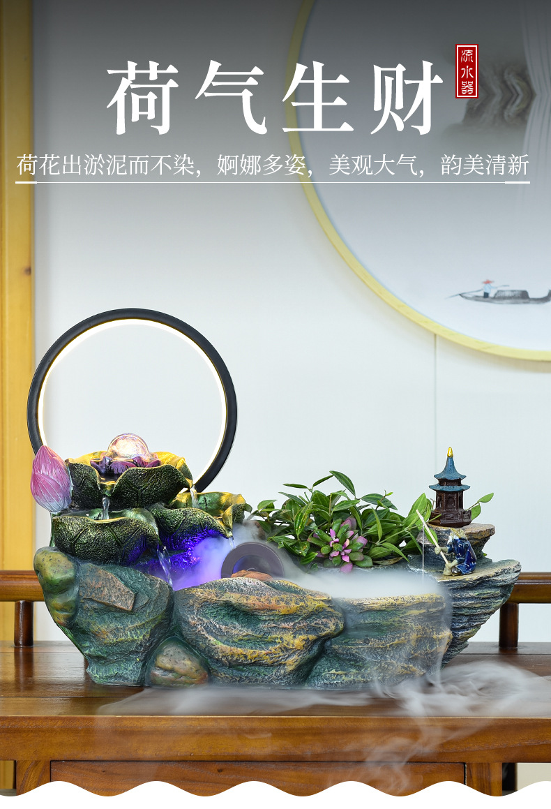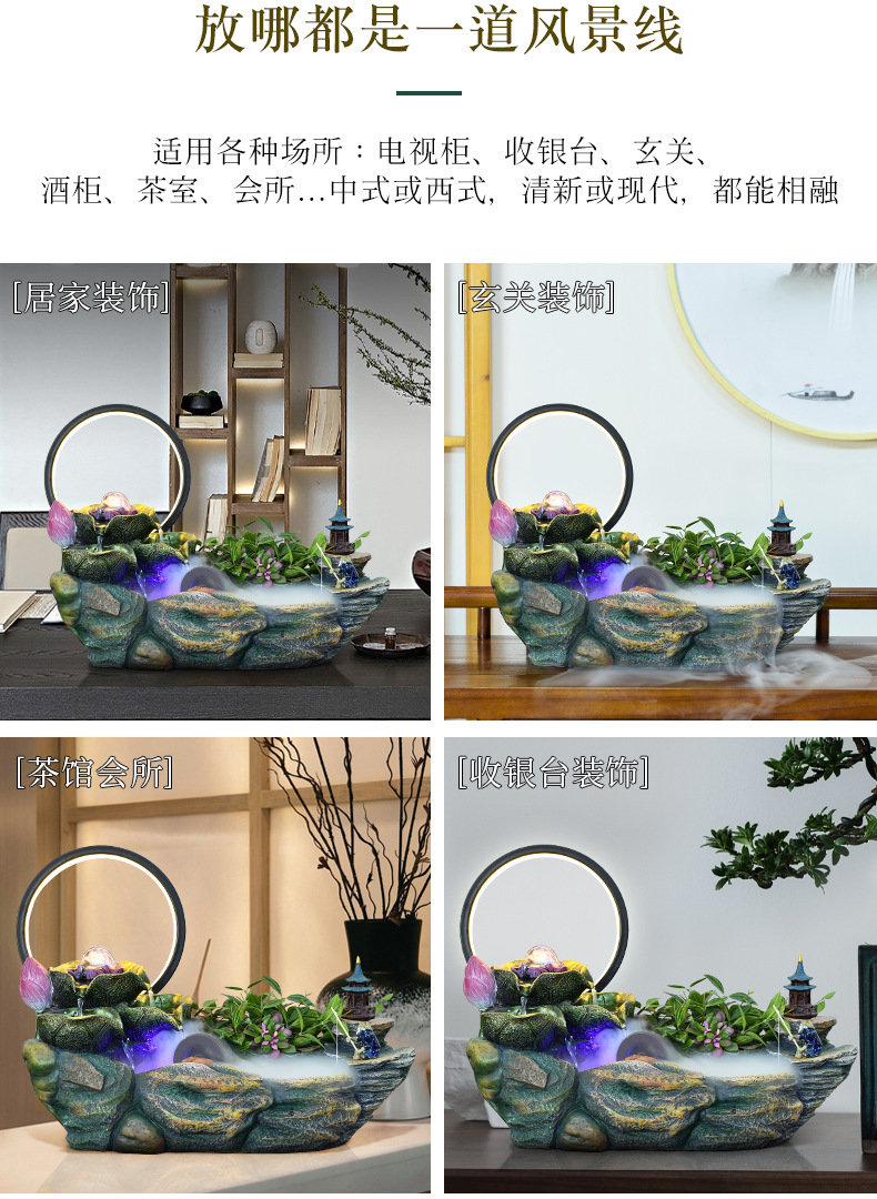 풍경 장식품 순환 물 분수 바위 물방아 풍경 행운 풍수 바퀴 실내 전사 볼 탁상 장식스토어 가기