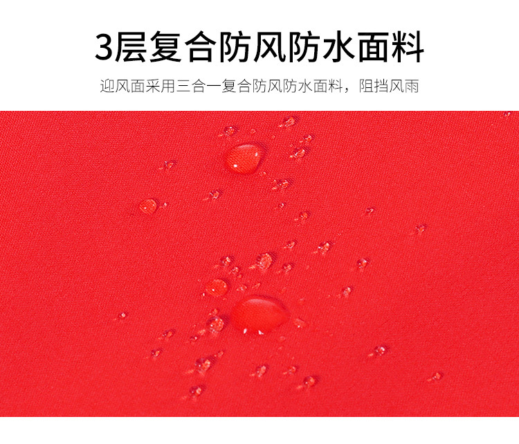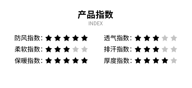 Fabric Material(面料材质) 三层复合抓绒 主布:100%Polyester(聚酯纤维)+ 带tpu膜复合+100%Polyester(聚酯纤维) 拼布:85%Polyester(聚酯纤维) 15% Spandex