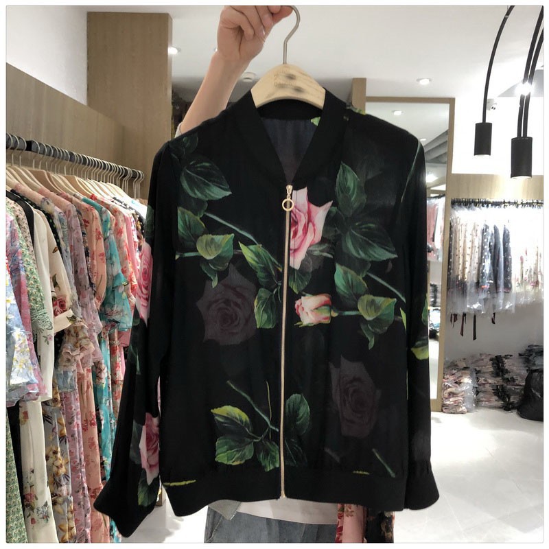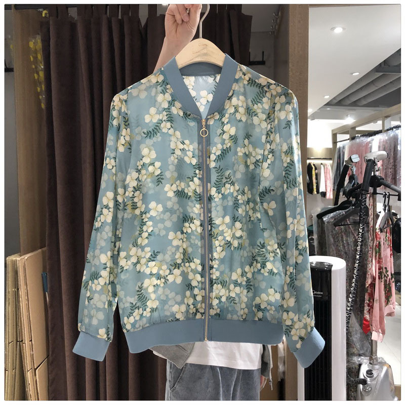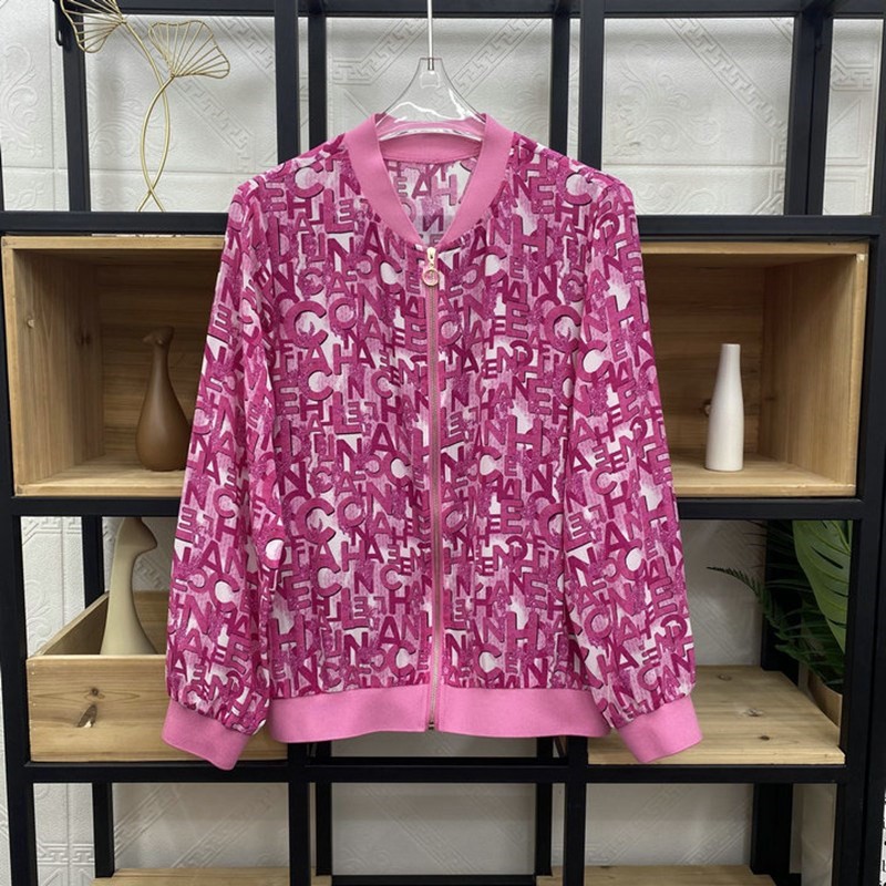 쉬폰 셔츠 얇은 지퍼 재킷 유럽 역 플러스 사이즈 국경 태국 2024 새로운 패션 인쇄 야구 세트스토어 가기