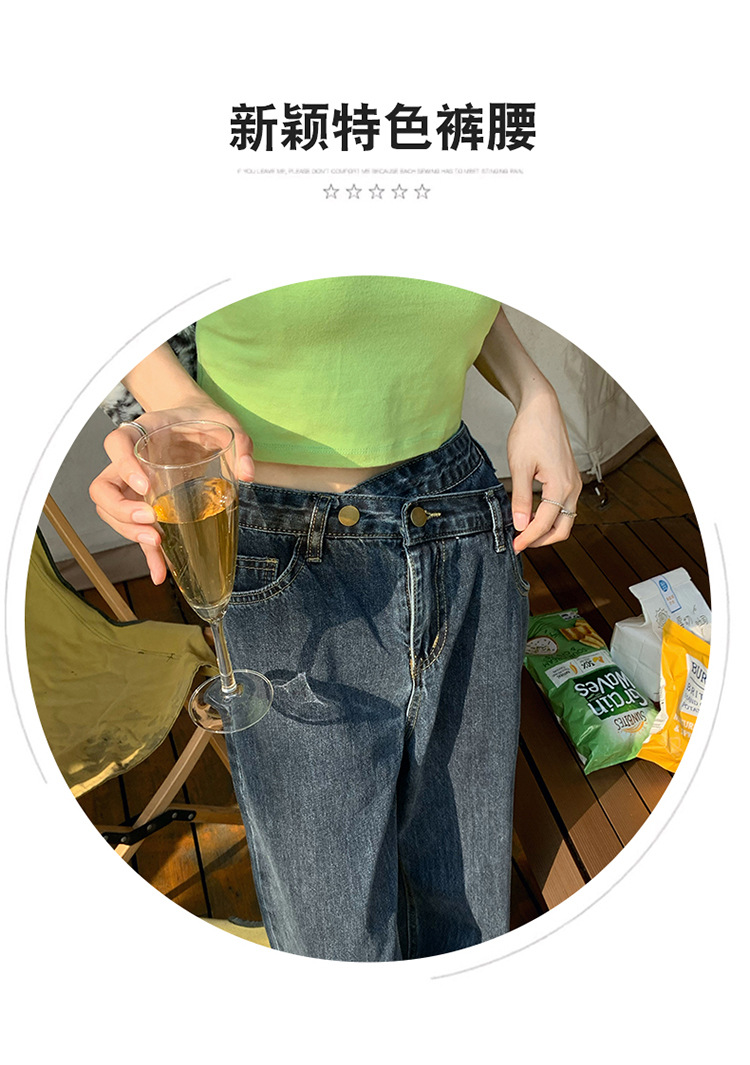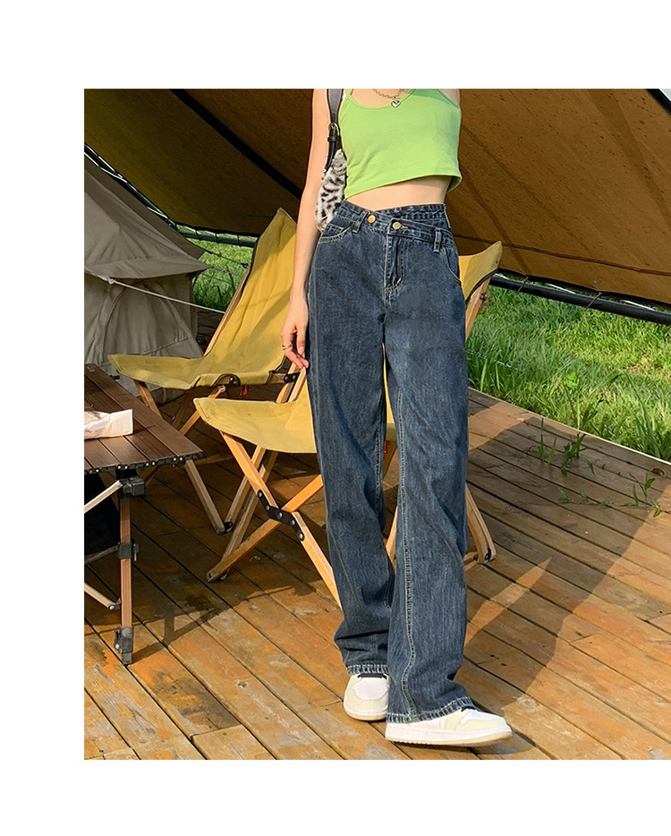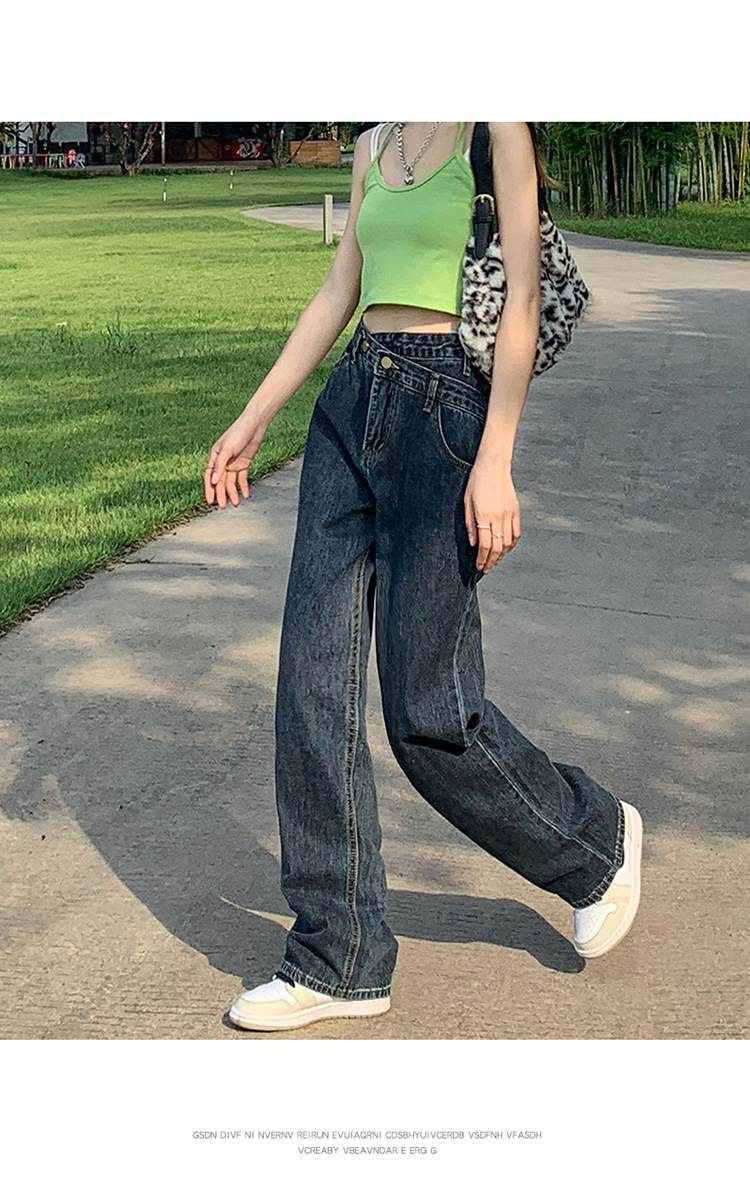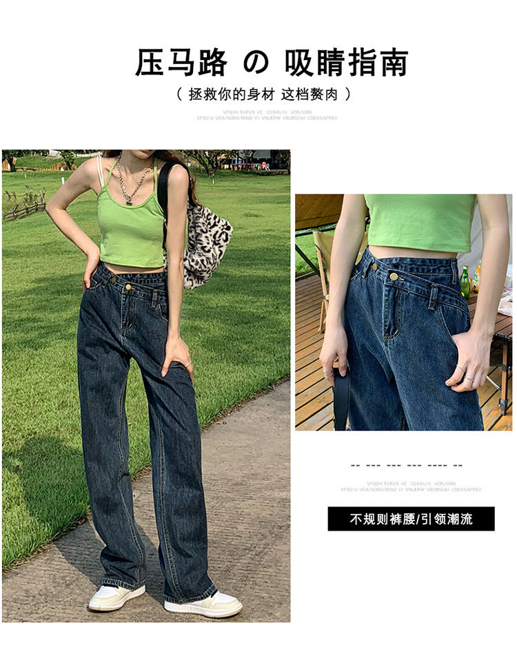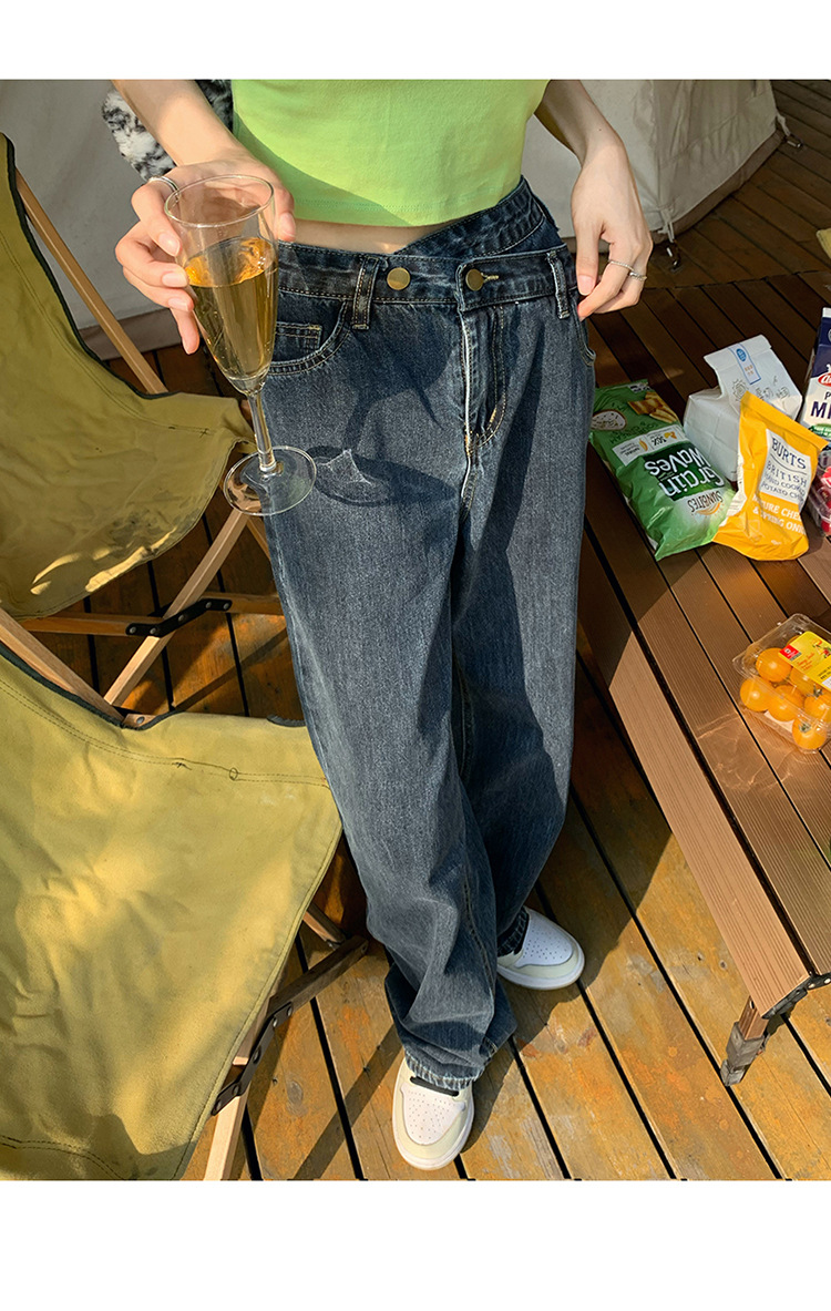 다크 블루 청바지 여자의 스트레이트 통통녀 슬림 룩 하이 웨이스트 불규칙 바지 플러스 사이즈 느슨한 바지스토어 가기
