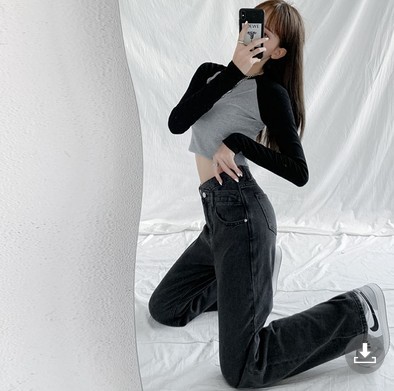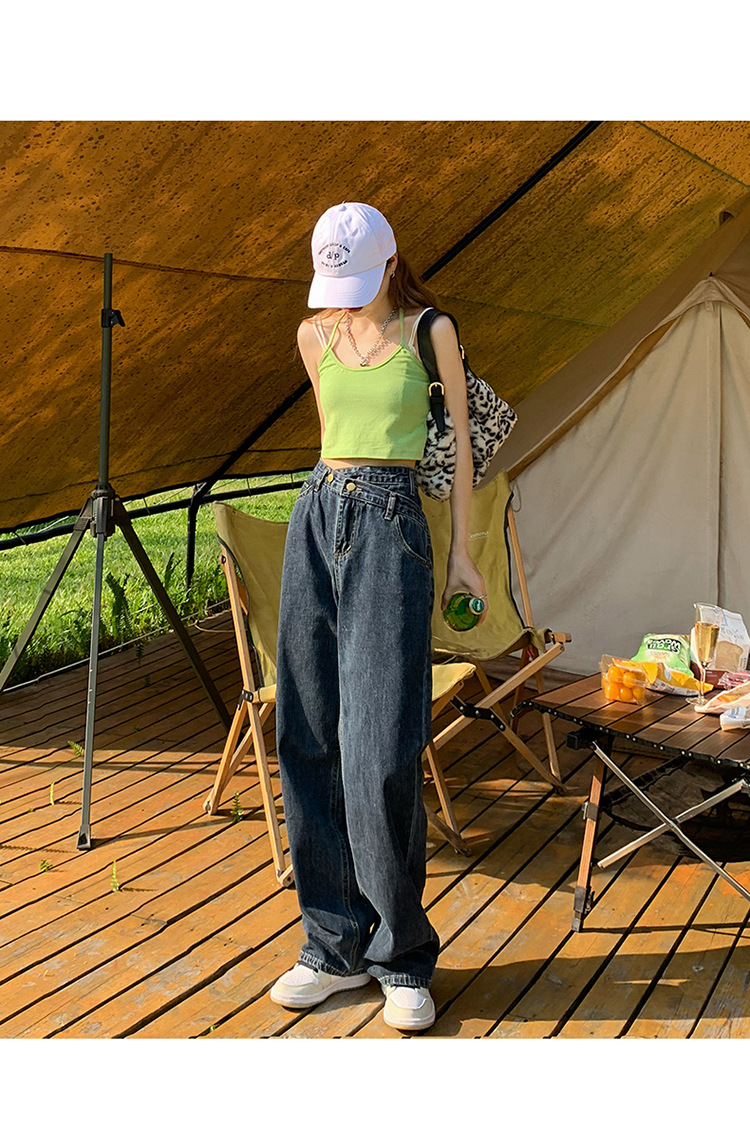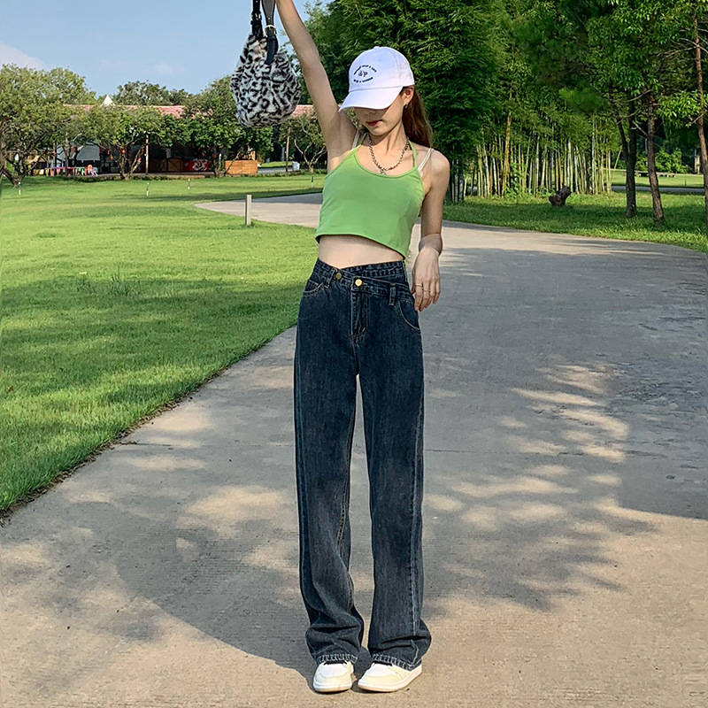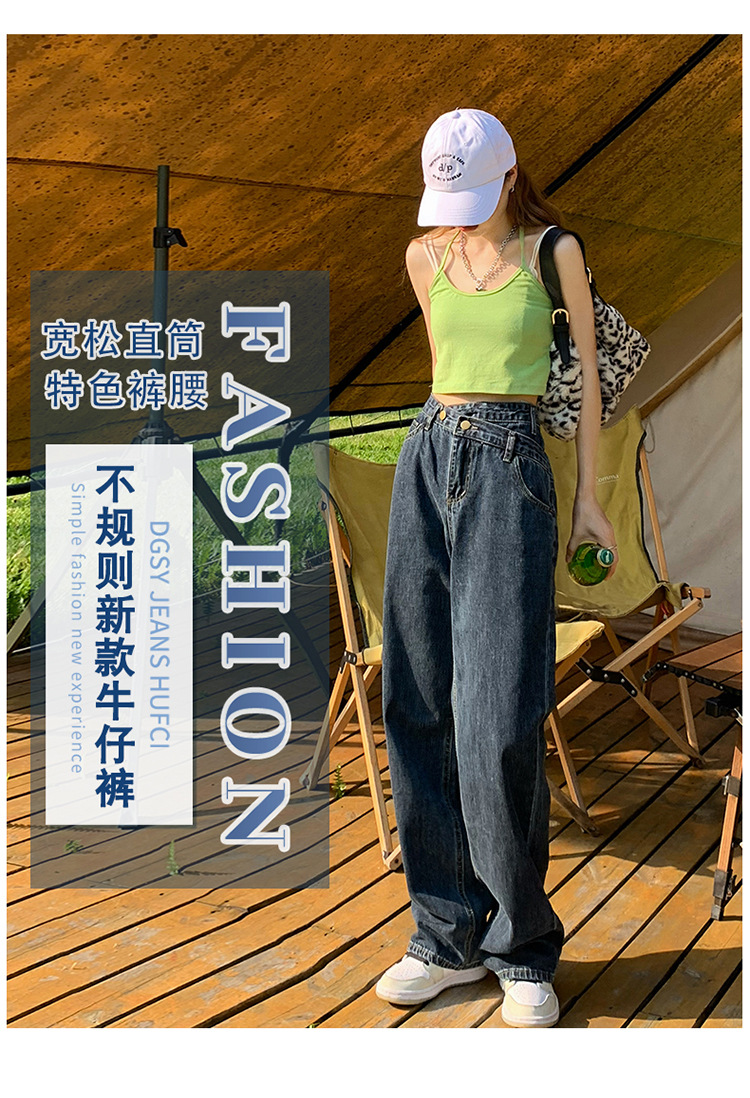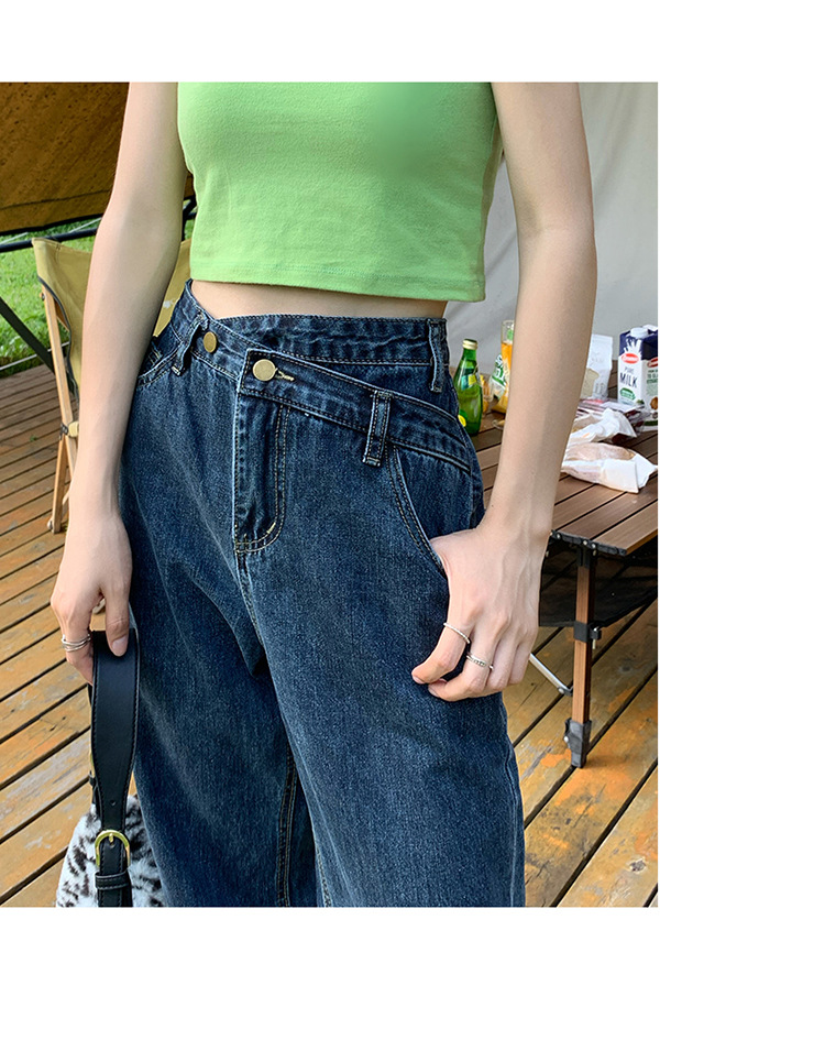 다크 블루 청바지 여자의 스트레이트 통통녀 슬림 룩 하이 웨이스트 불규칙 바지 플러스 사이즈 느슨한 바지스토어 가기