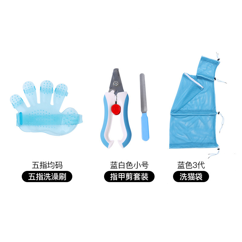 • 고양이 세척 가방 3 세대 파란색 다섯 손가락 브러시 손톱 가위