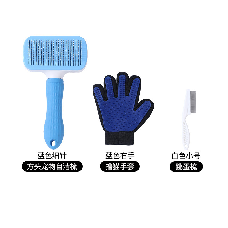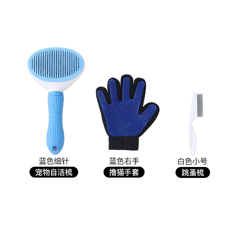 • 블루 원 버튼 빗 장갑 벼룩 빗