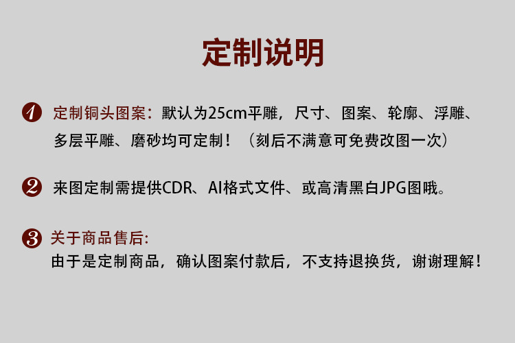 • 양각 구리 머리 (나무 손잡이 단일 장)
