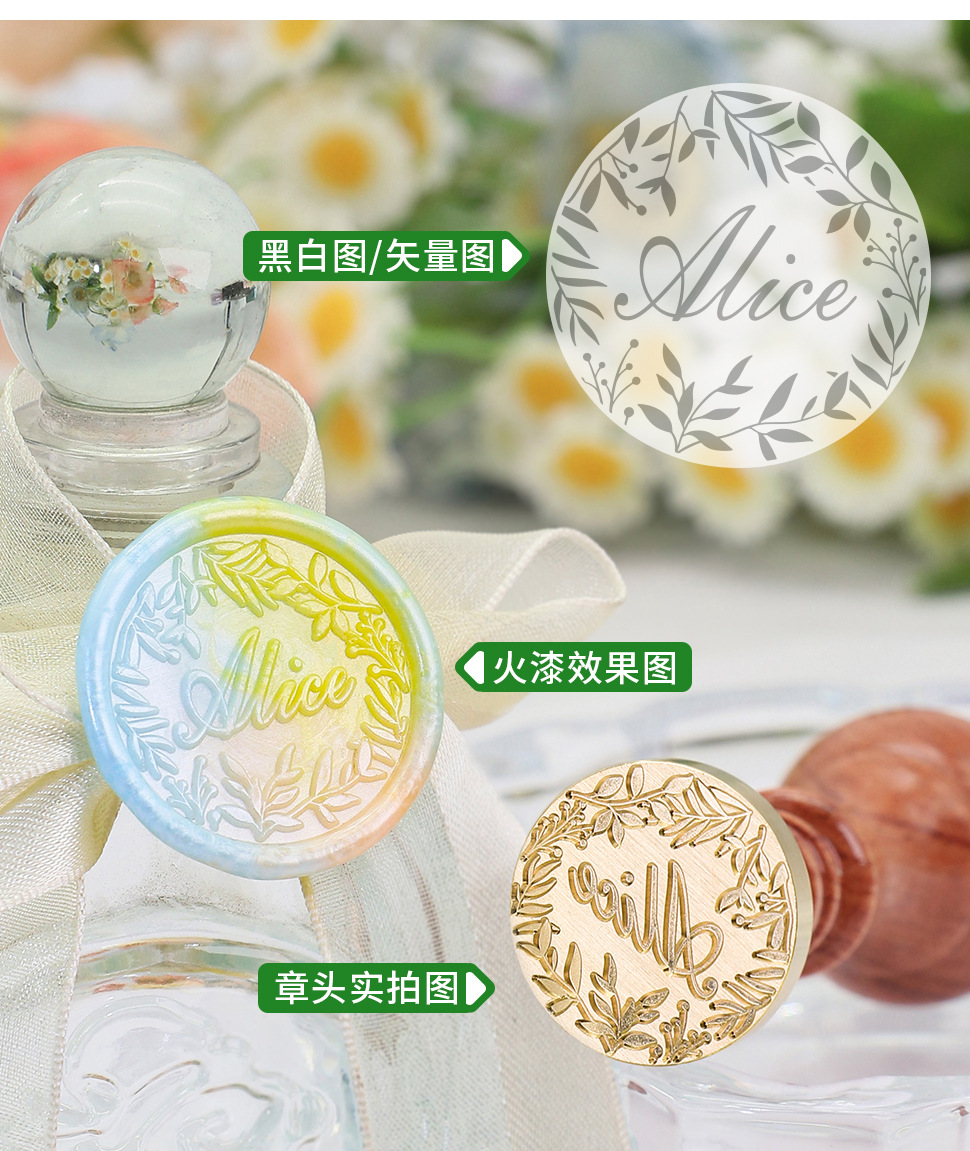 Yaqi 파이어 페인트 스탬프 복고풍 웨딩 레터링 로고 다중 사양 및 다중 크기 솔리드 파이어 페인트 스탬프 헤드 맞춤 각인스토어 가기