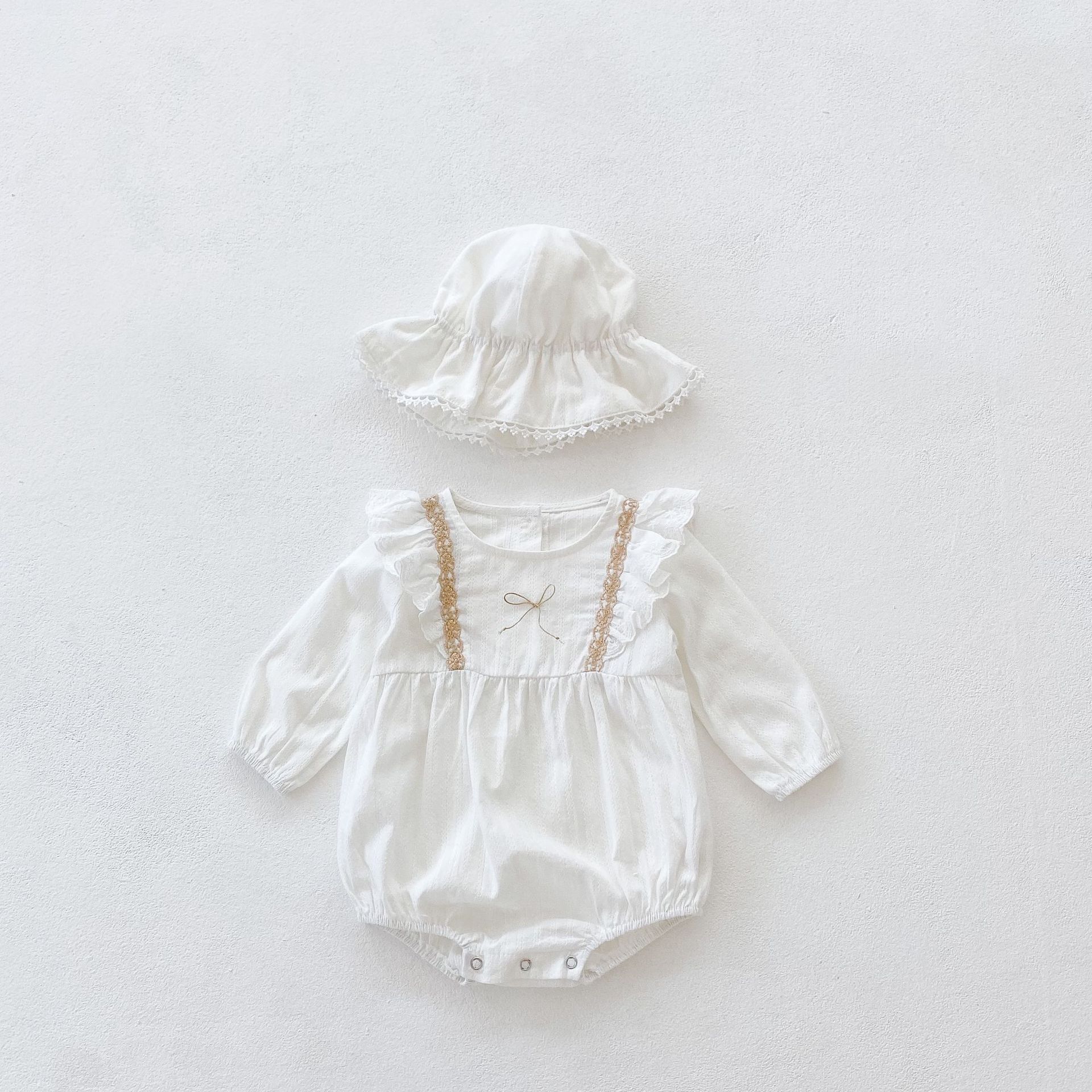 INS 2025 봄과 가을 유아 소녀 Pleated 레이스 크루 넥 긴 소매 모자 올인원 등반 원피스 모자스토어 가기