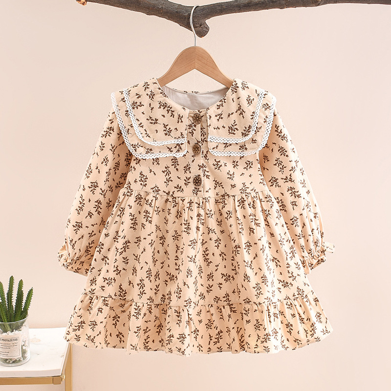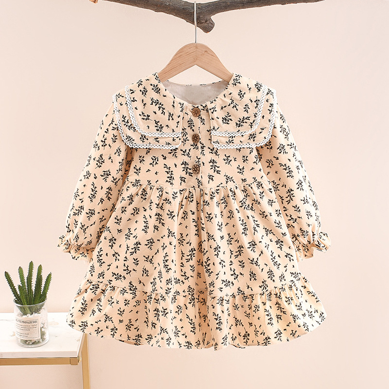 여자 봄과 가을 두꺼운 원피스 젖빛 꽃 큰 옷깃 대학 스타일 네이비 칼라 공주 긴 원피스 유행스토어 가기
