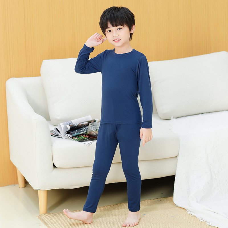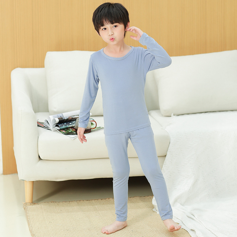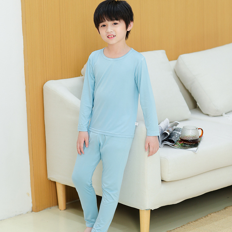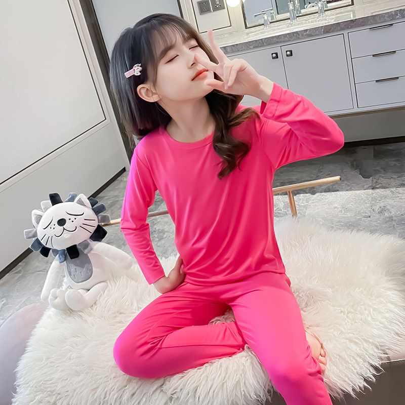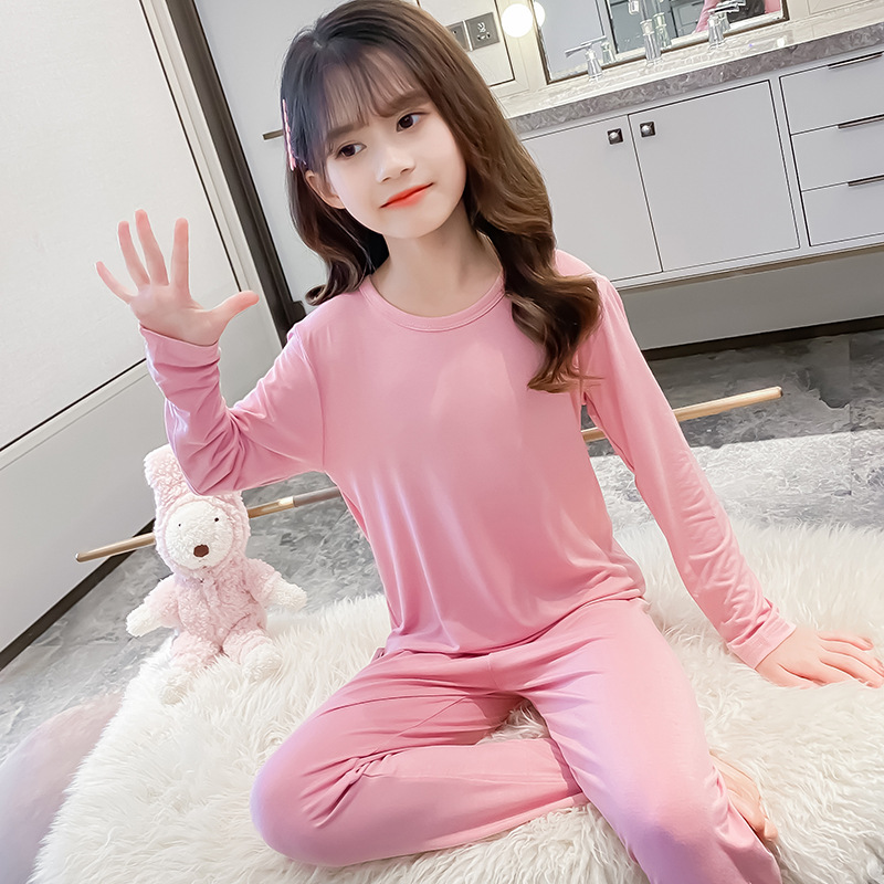 모달 어린이 잠옷 봄과 가을 긴 소매 얇은 소년 가정 옷 세트 여아 가을 옷과 바지 열 속옷