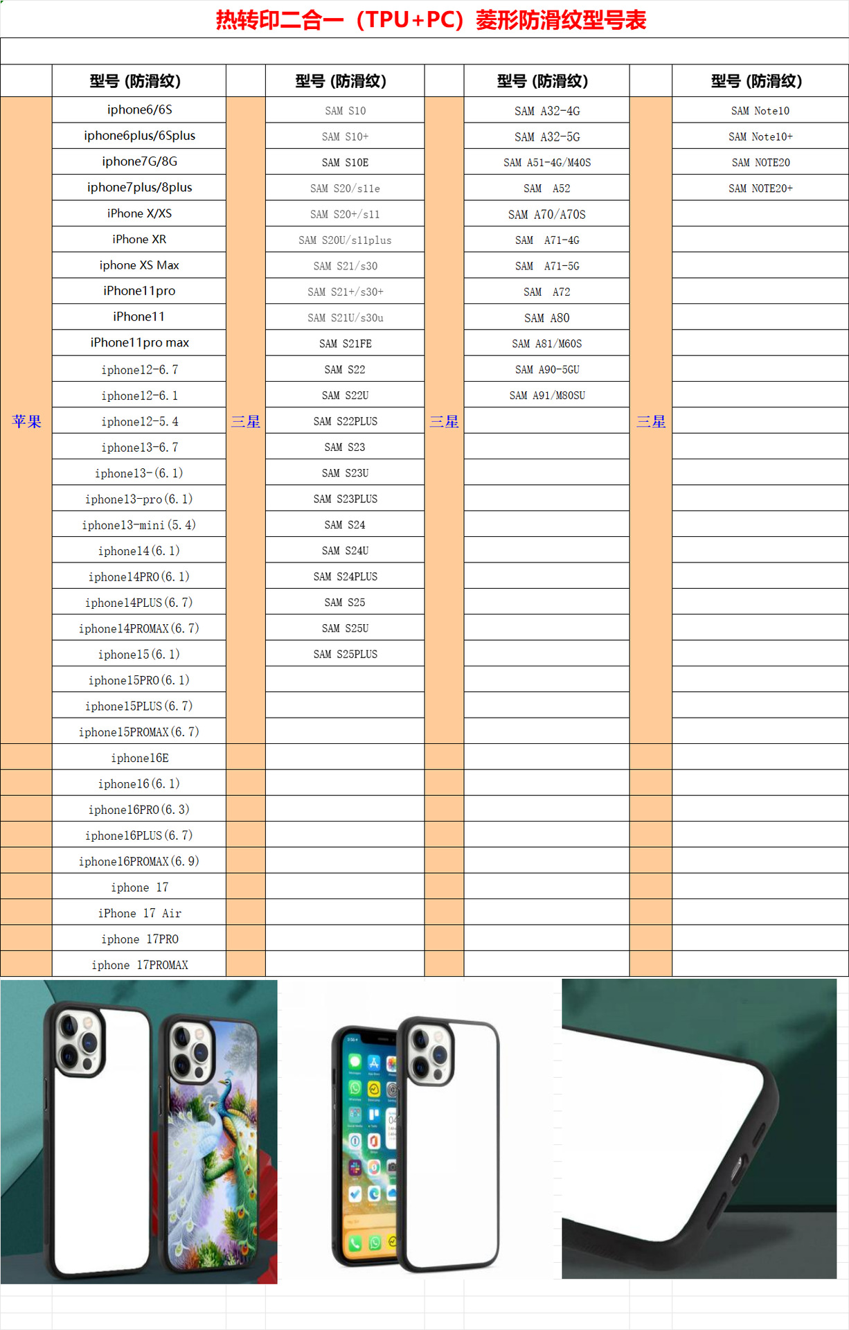 材质:TPU(软壳)+PC二合一 ,配热转印铝片