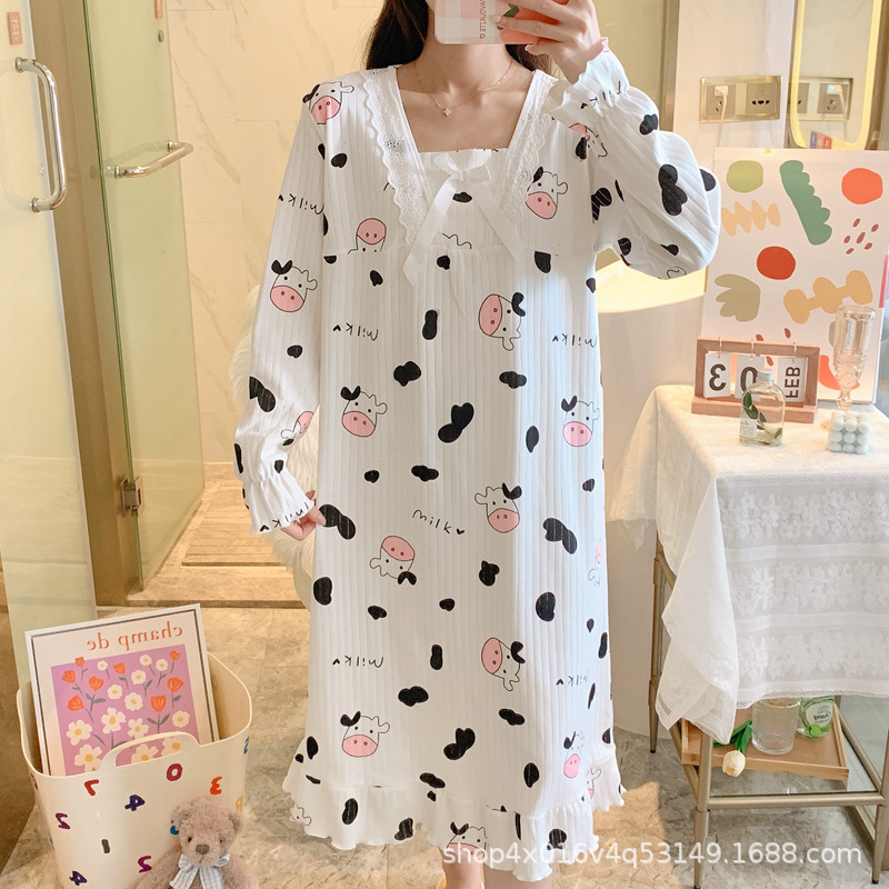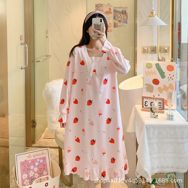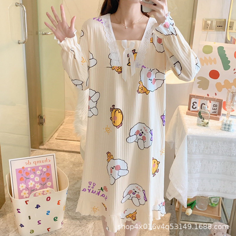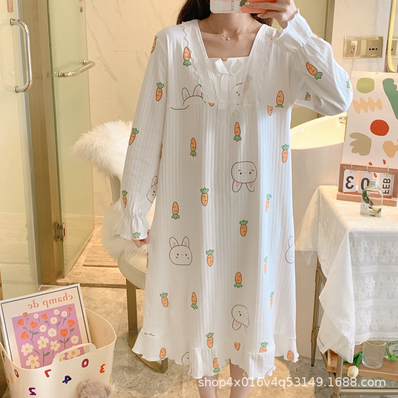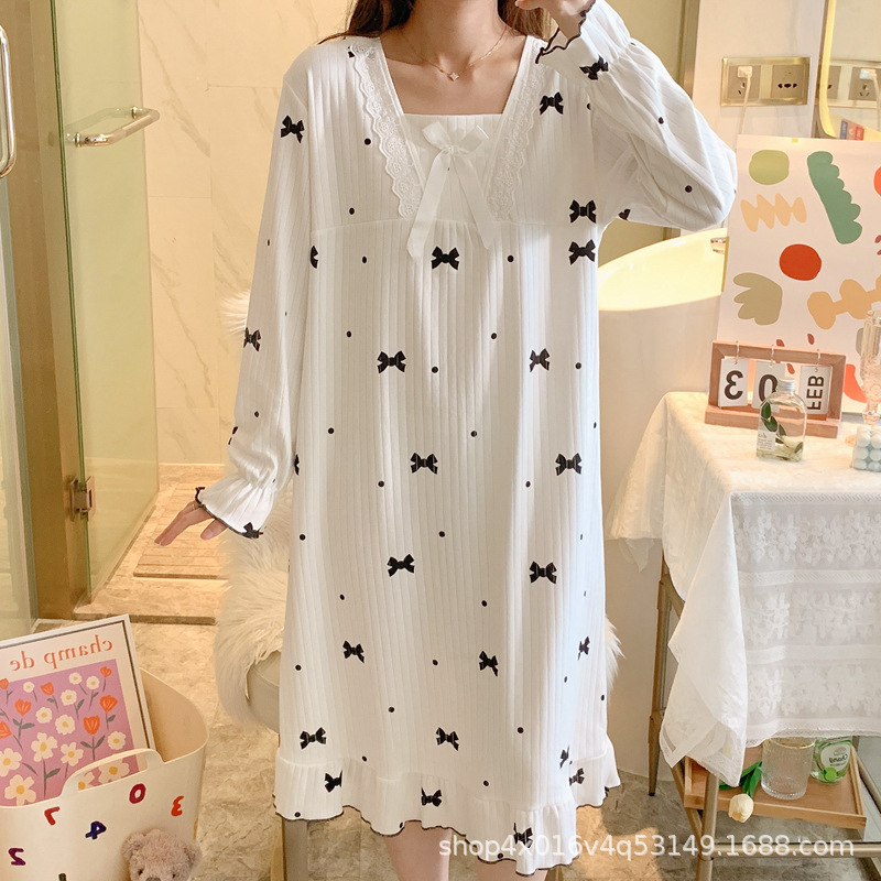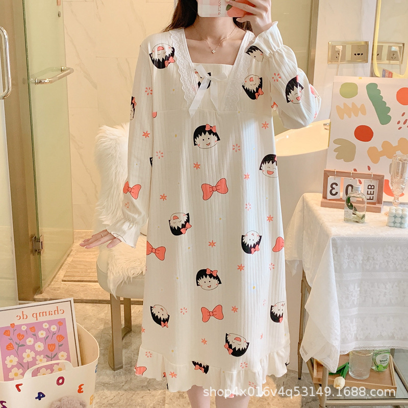 잠옷 잠옷 여자의 봄과 가을 새로운 긴 소매 귀여운 인형 칼라 공주 스타일 잠옷 겉옷 원피스