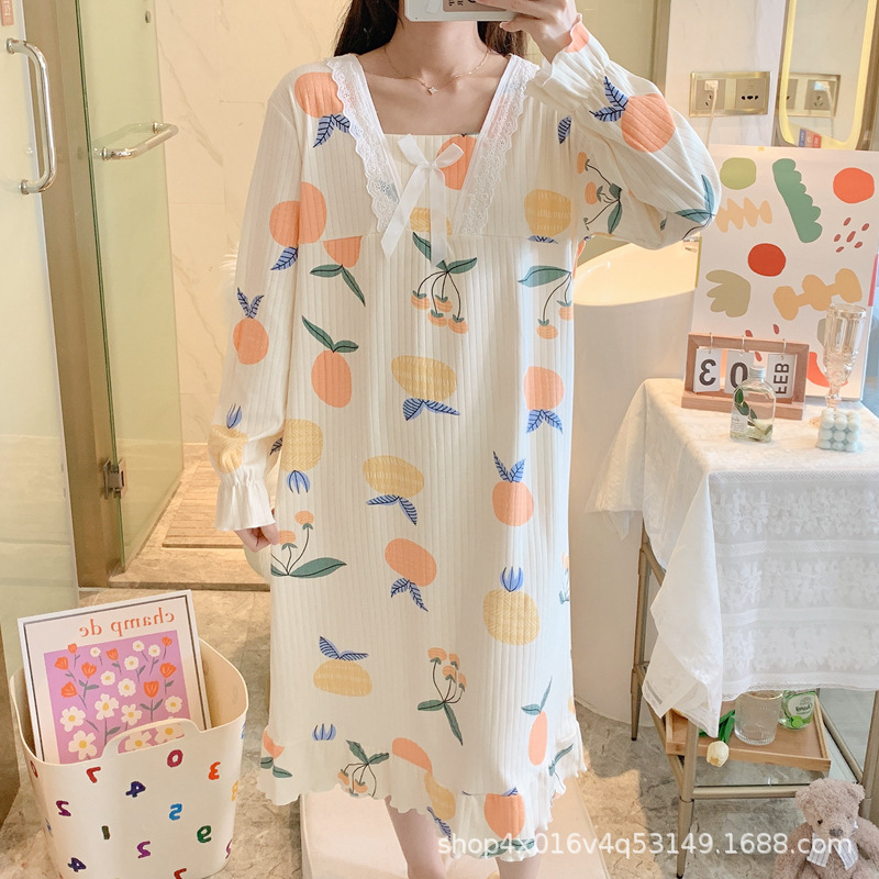 잠옷 잠옷 여자의 봄과 가을 새로운 긴 소매 귀여운 인형 칼라 공주 스타일 잠옷 겉옷 원피스스토어 가기