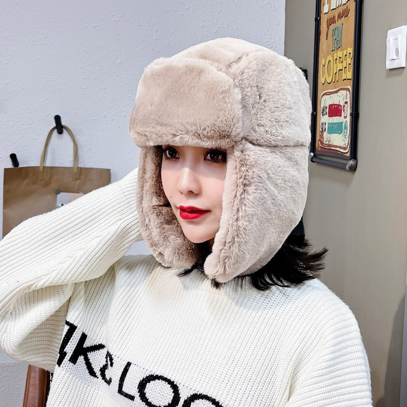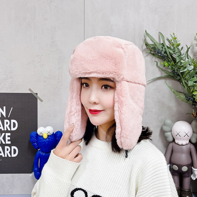 남성과 여성을위한 겨울 플러시 Lei Feng 모자 한국어 버전 따뜻한 모조 토끼 모피 차가운 모자 야외 사이클링 방한 북동부 두꺼운 면화 모자