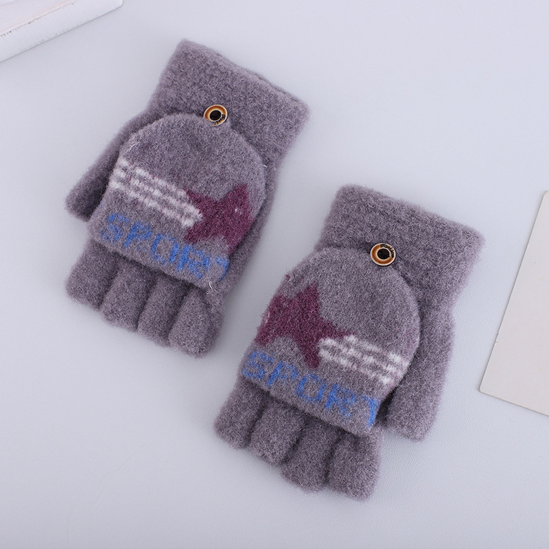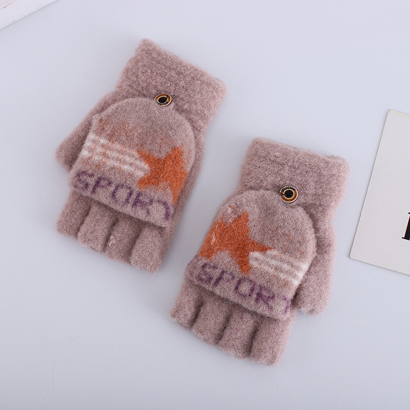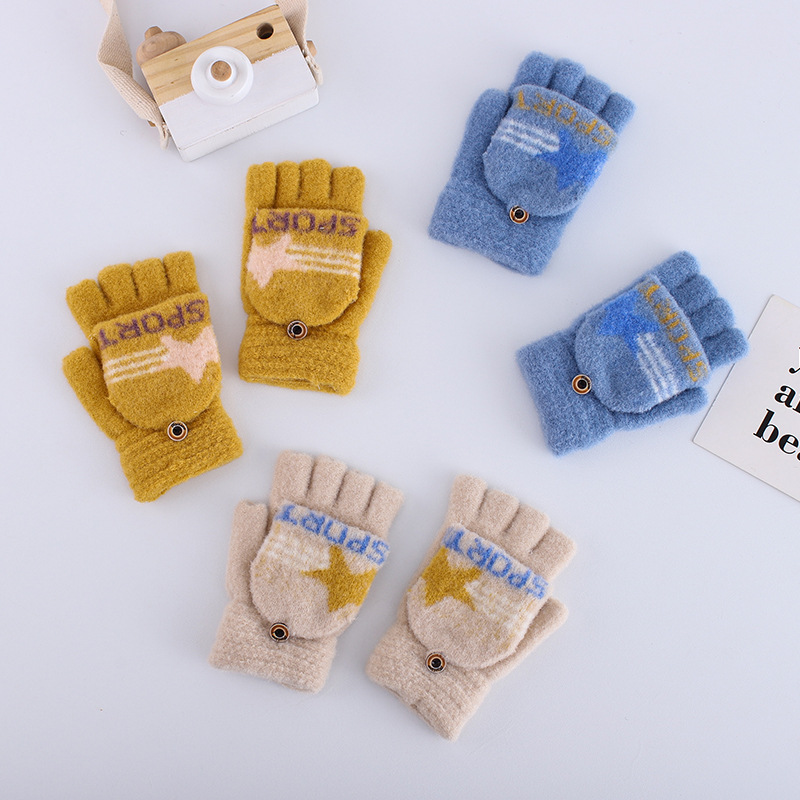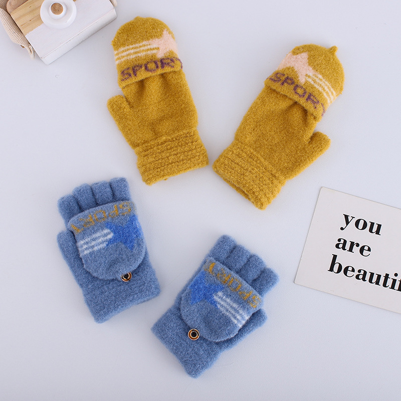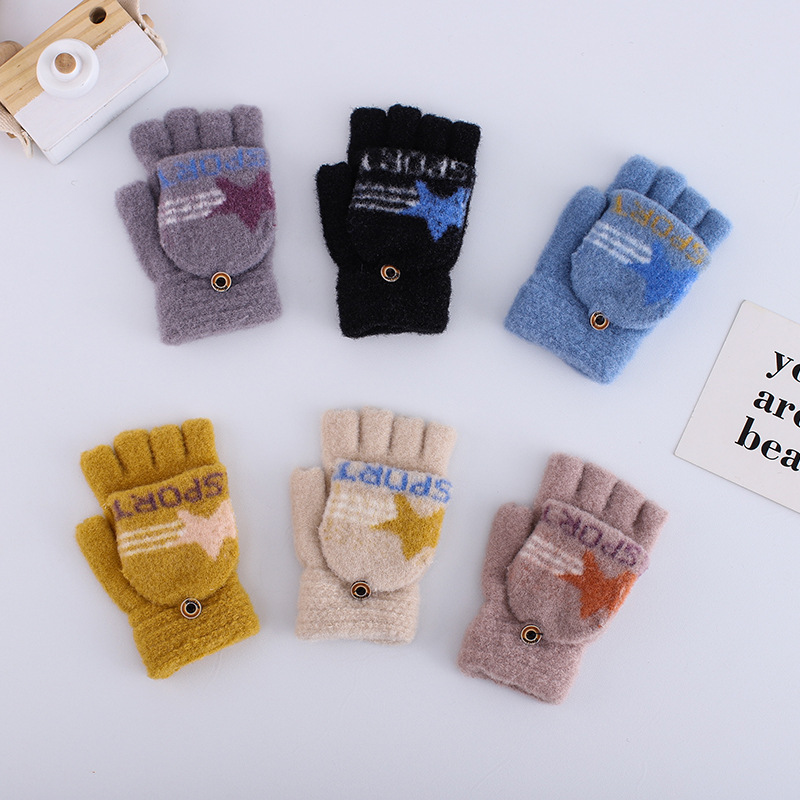 플립 하프 핑거 여성 다섯 손가락 벨벳 라인 겨울 타이핑 따뜻한 일본어와 한국 어린이 남자 오픈 핑거 두꺼운 학생 필기 장갑