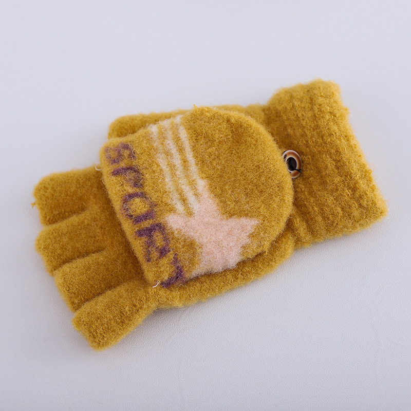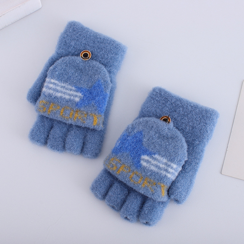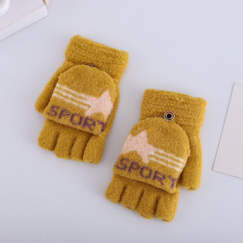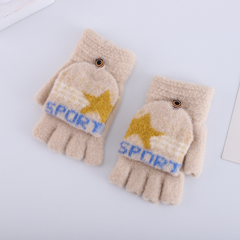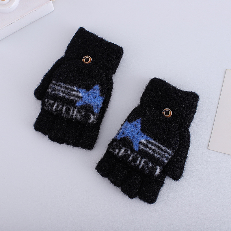 플립 하프 핑거 여성 다섯 손가락 벨벳 라인 겨울 타이핑 따뜻한 일본어와 한국 어린이 남자 오픈 핑거 두꺼운 학생 필기 장갑