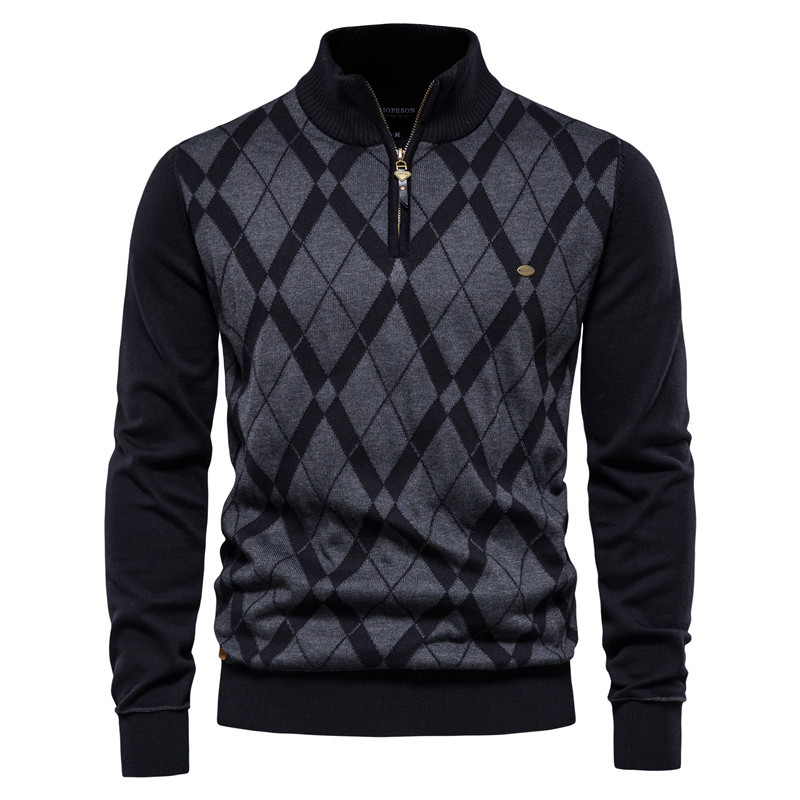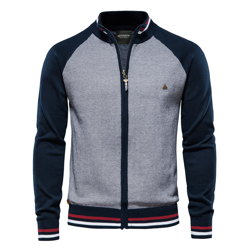 2024 가을 겨울 남성 캐주얼 니트 스웨터 남성용 재킷 스타일 배색 한국 스타일 슬림핏 청년용스토어 가기