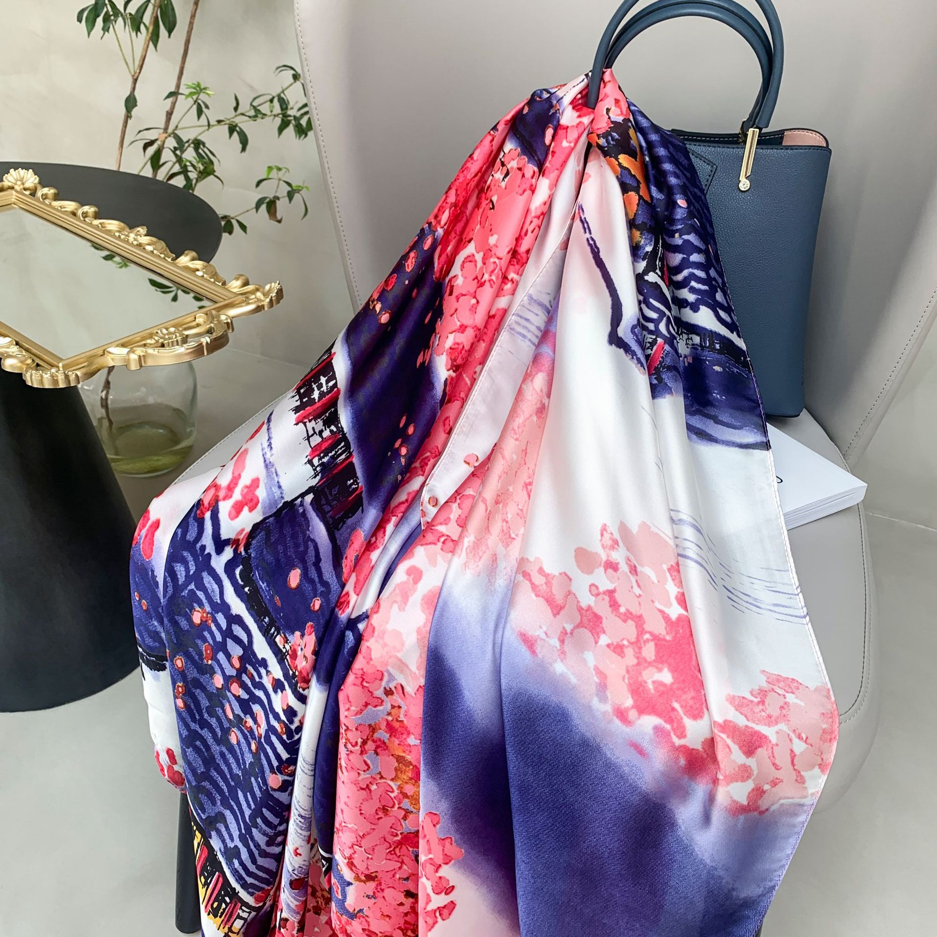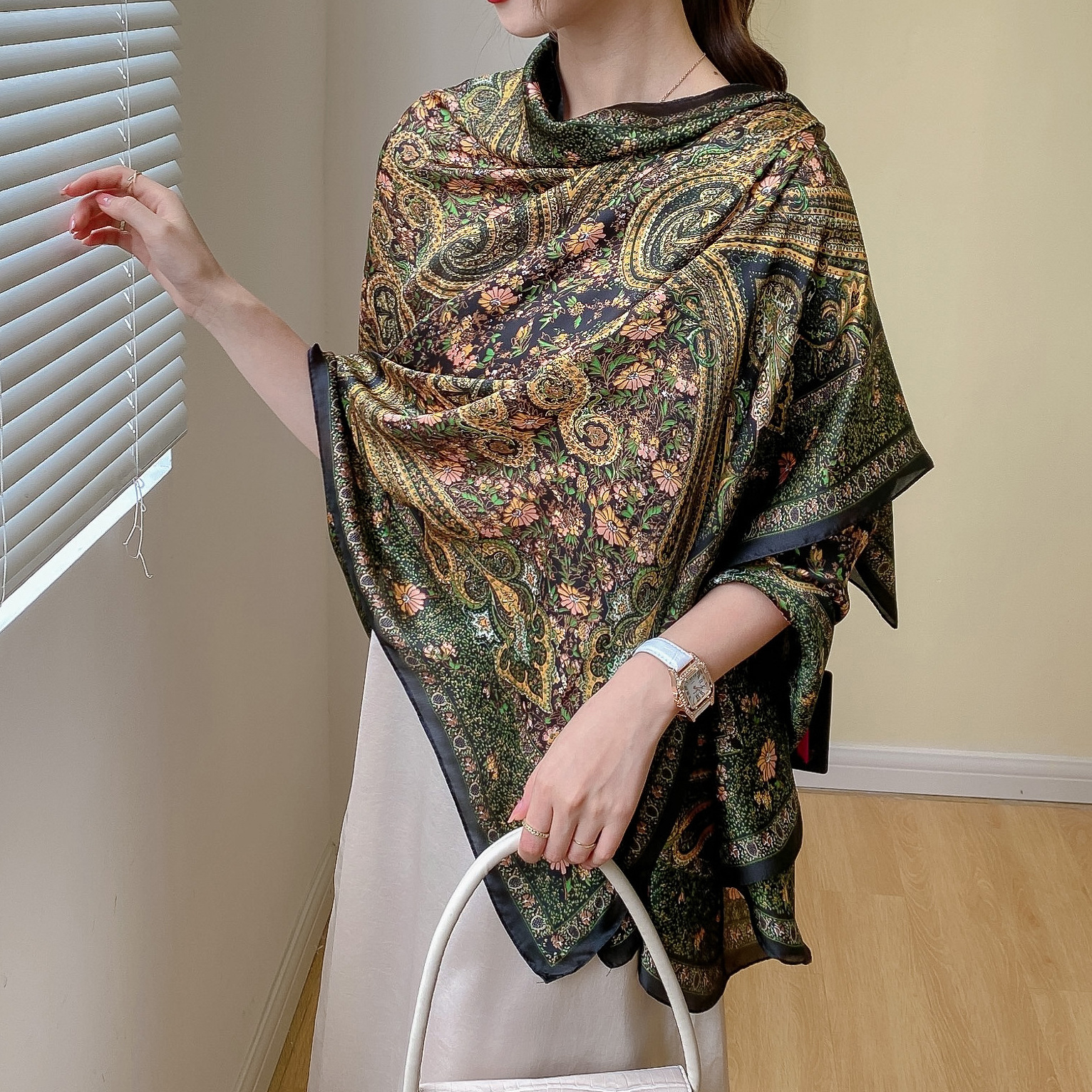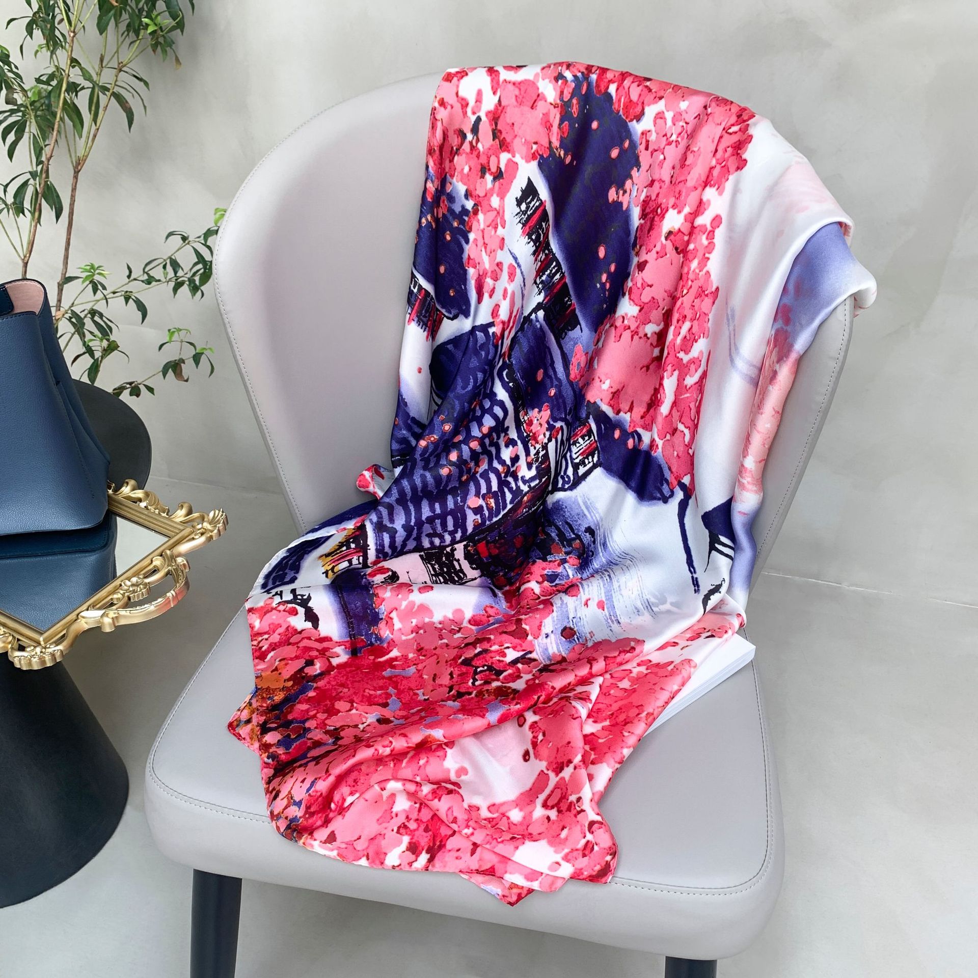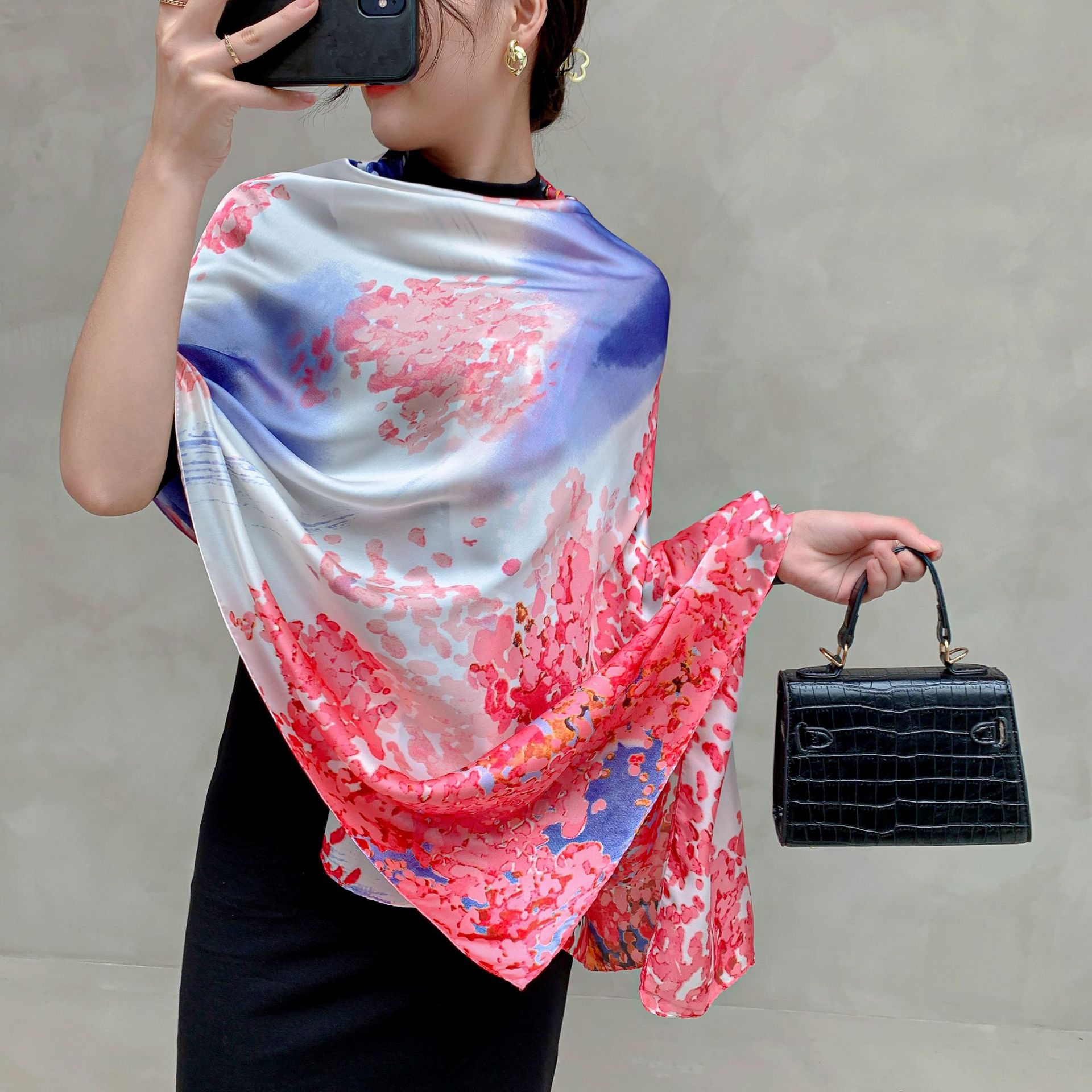한국 스타일 유행 간단한 향기로운 구름 캐슈 패턴 긴 실크 스카프 봄 여름 가을 실크 여성의 외부 선 스크린 목도리스토어 가기
