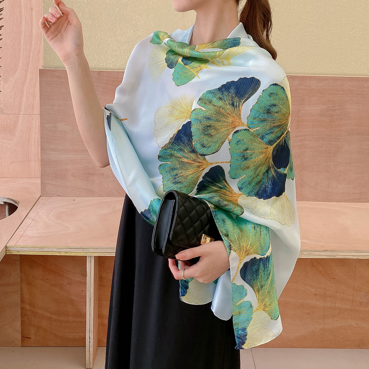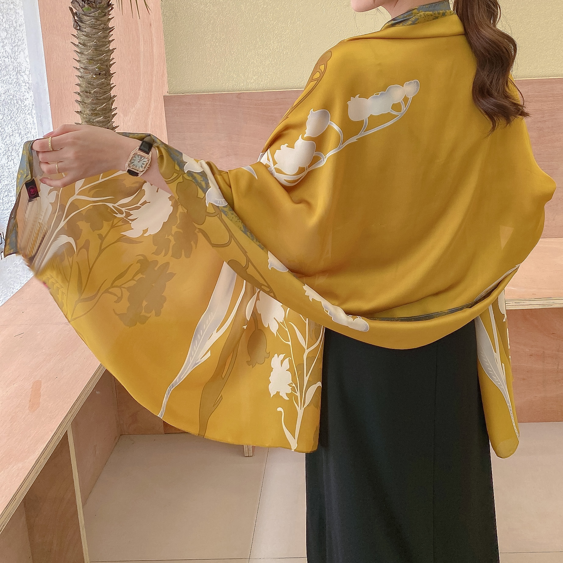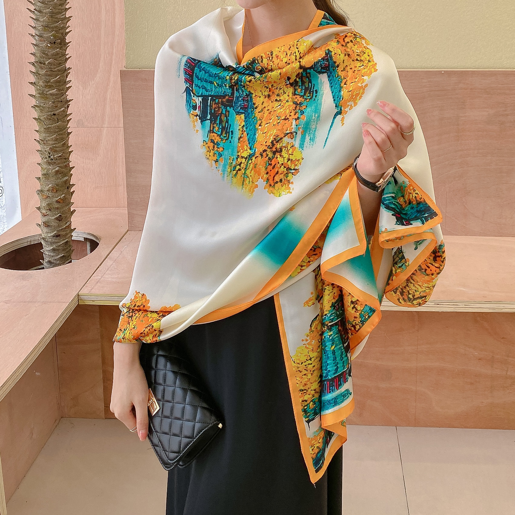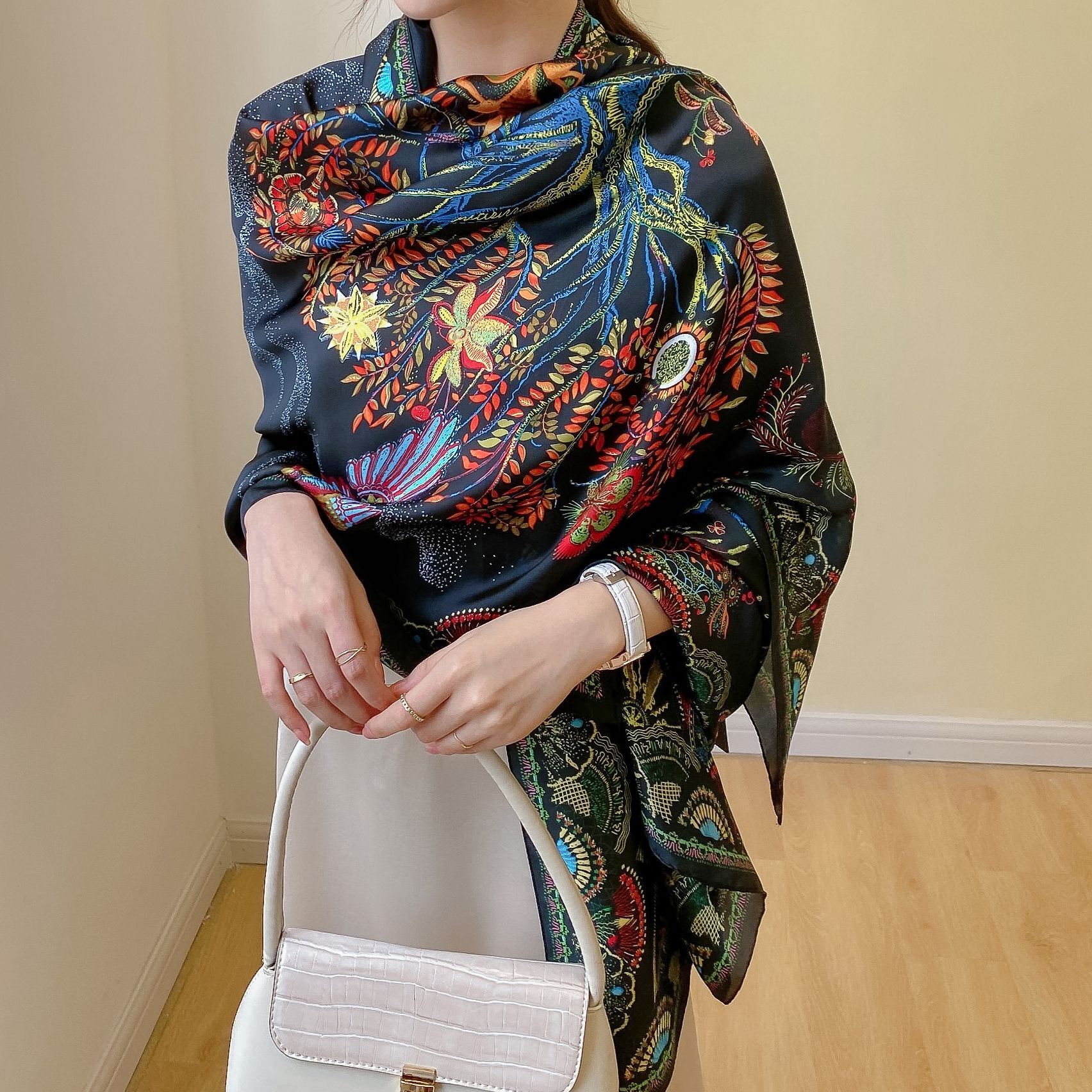 한국 스타일 유행 간단한 향기로운 구름 캐슈 패턴 긴 실크 스카프 봄 여름 가을 실크 여성의 외부 선 스크린 목도리스토어 가기