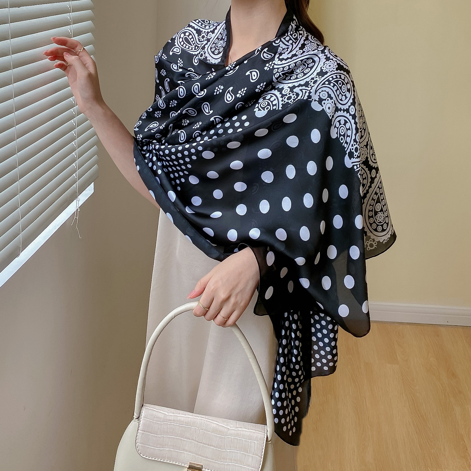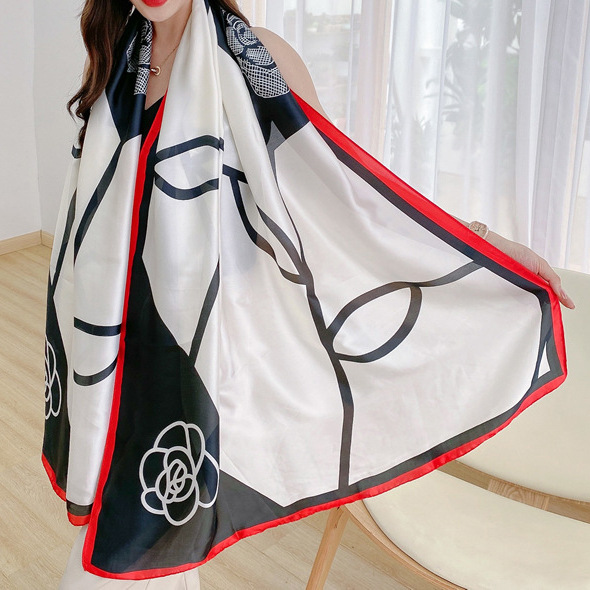 한국 스타일 유행 간단한 향기로운 구름 캐슈 패턴 긴 실크 스카프 봄 여름 가을 실크 여성의 외부 선 스크린 목도리