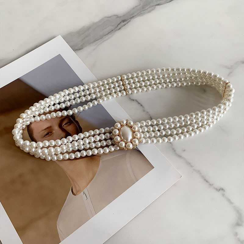 공장 직접 진주 벨트 여성 패션 장식 여성 허리 체인 간단한 라인스톤 상감 구슬 탄성 허리 씰스토어 가기