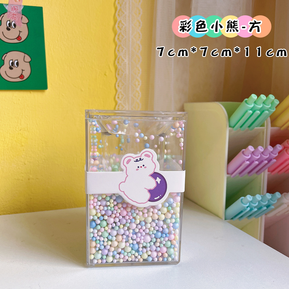 Ins 투명 아크릴 펜 홀더 사각형 라운드 데스크탑 스토리지 다기능 학생 문구 스토리지 펜 홀더 도매