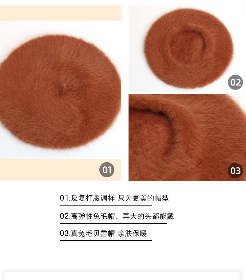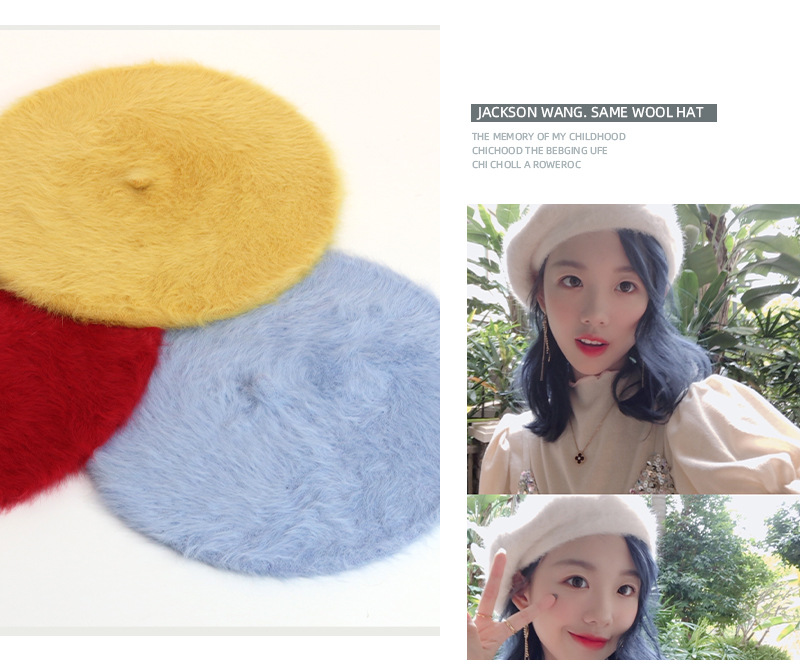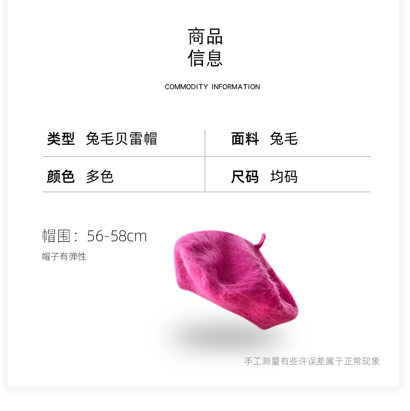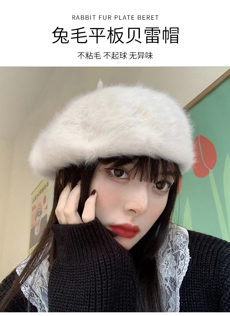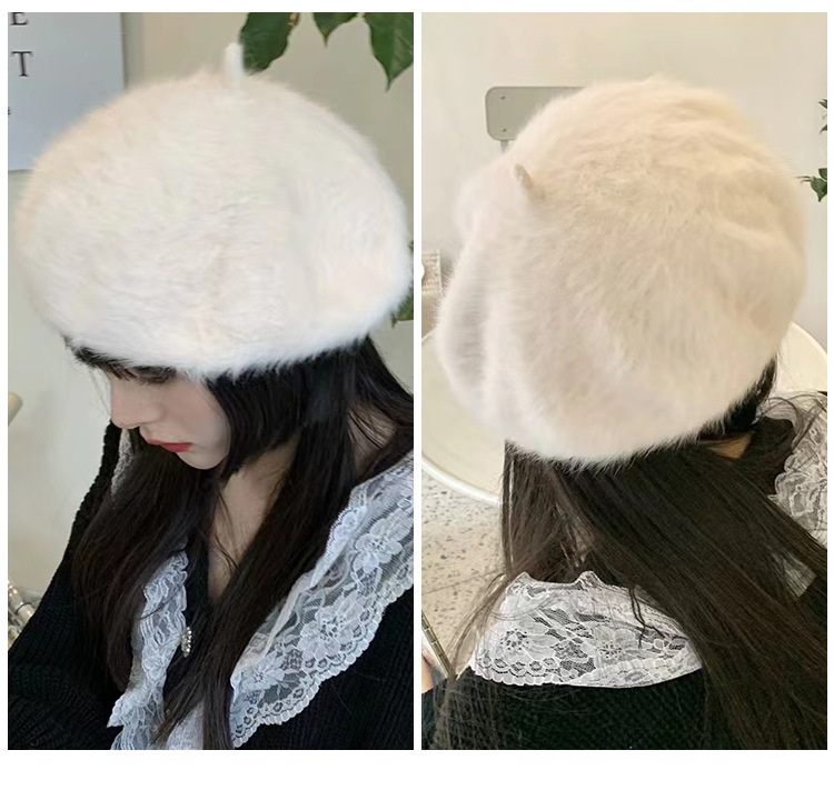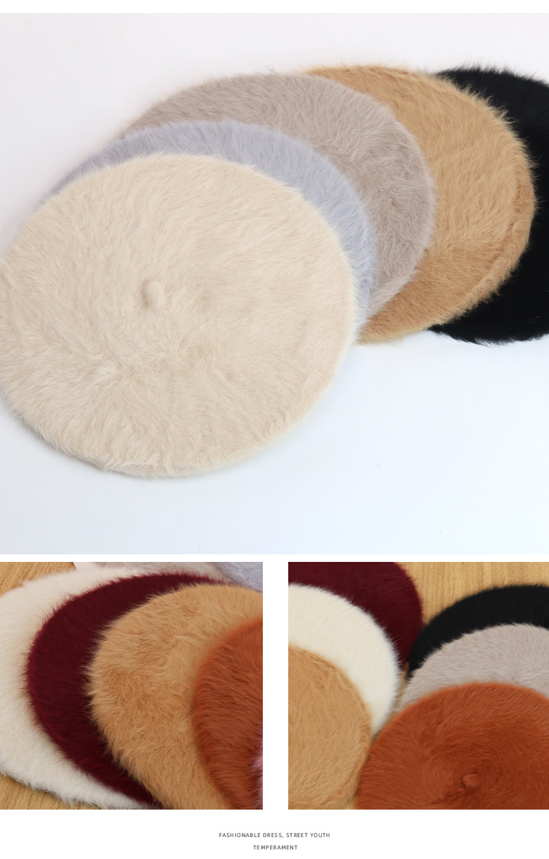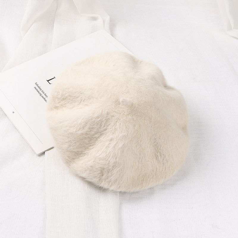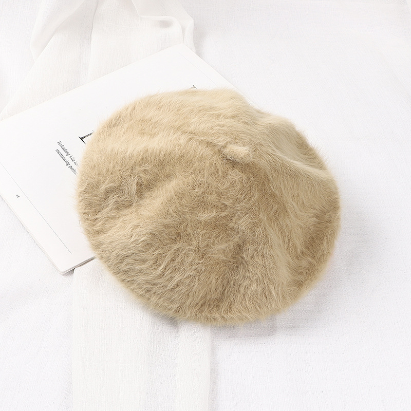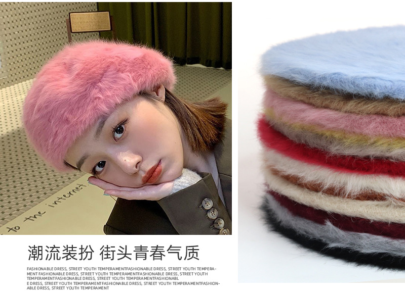 토끼털 플랫 베레모 여성용 마카롱 단색 플러시 니트 화가 모자 가을 겨울 일본 스타일 벨벳 베레모스토어 가기