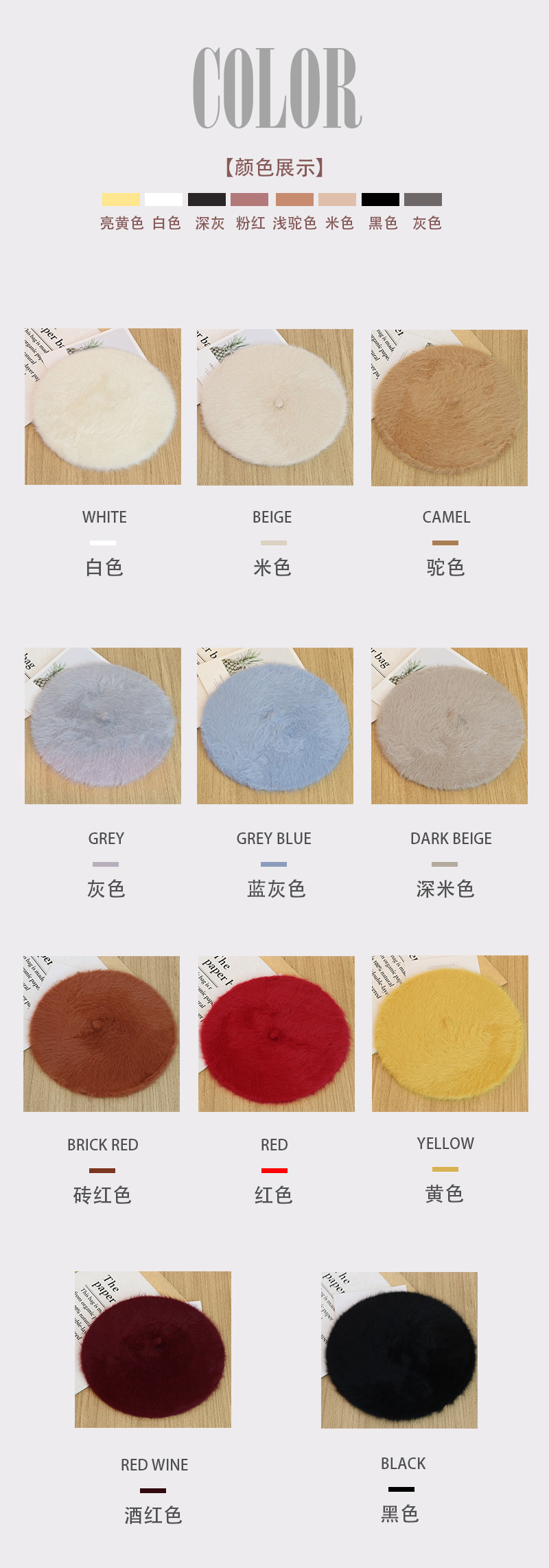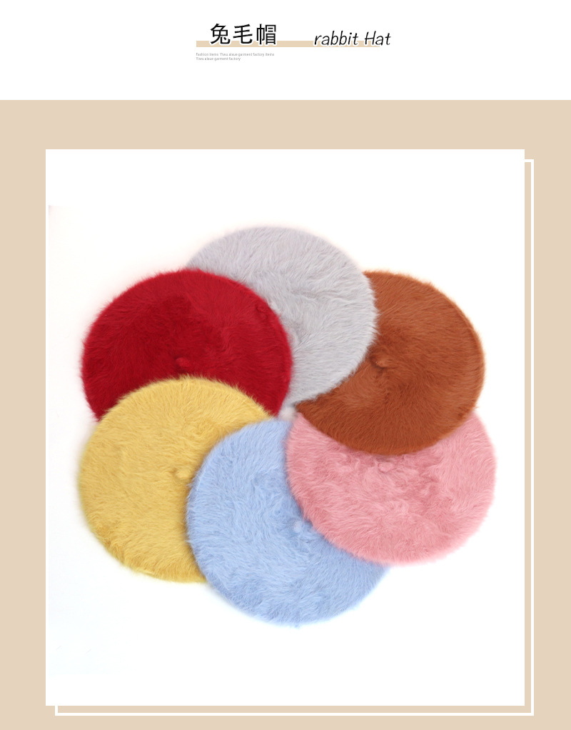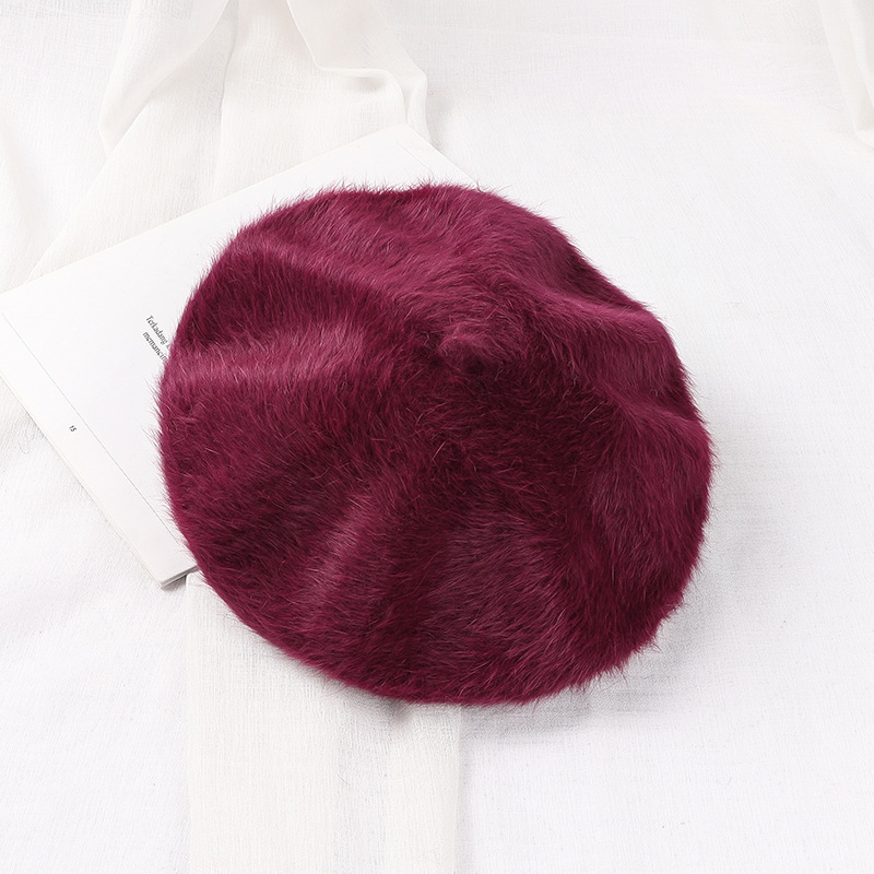 토끼털 플랫 베레모 여성용 마카롱 단색 플러시 니트 화가 모자 가을 겨울 일본 스타일 벨벳 베레모