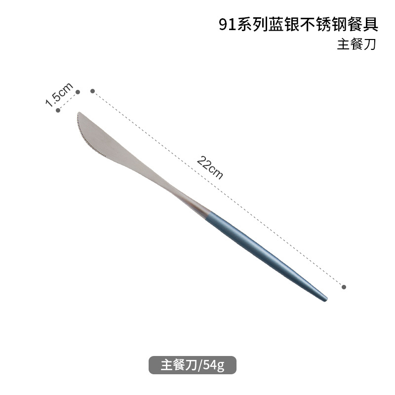 인터넷 유명인의 블루 실버 가정용 서양 식기 304 스테인레스 스틸 스테이크 칼과 포크 스푼 세트 커피 스푼 호텔 식기스토어 가기